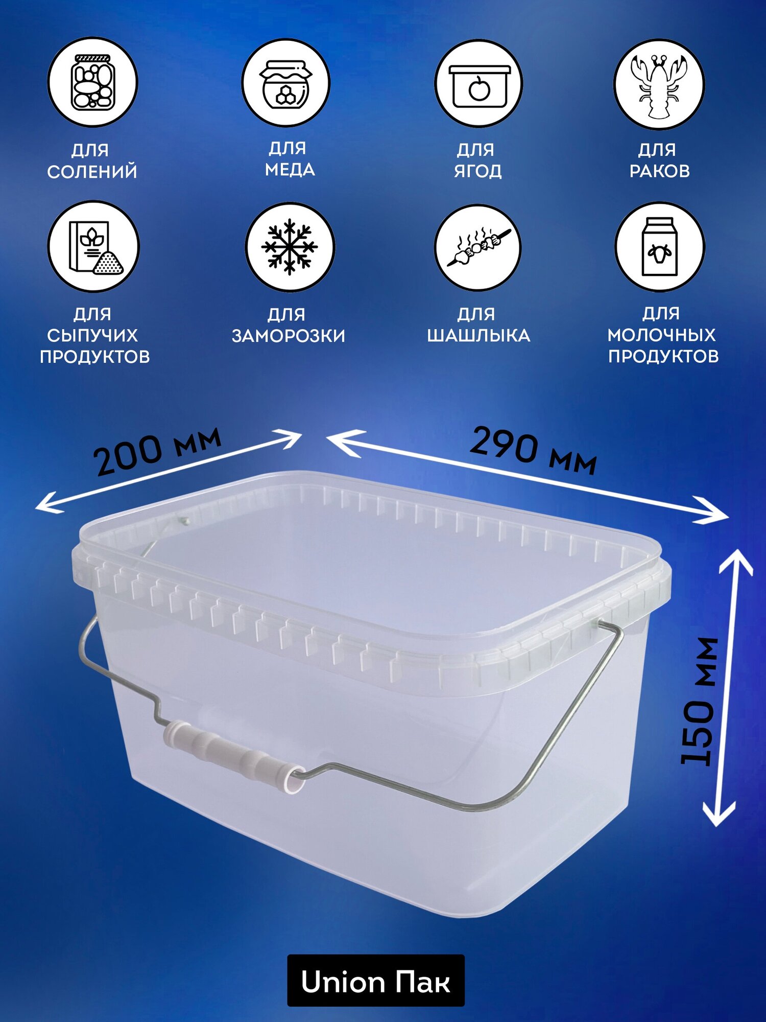 Ведро с крышкой пищевое для продуктов прямоугольное 5.8 литра 2 штуки информация: