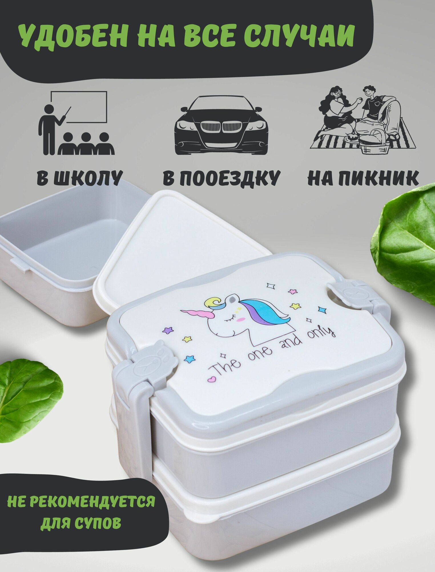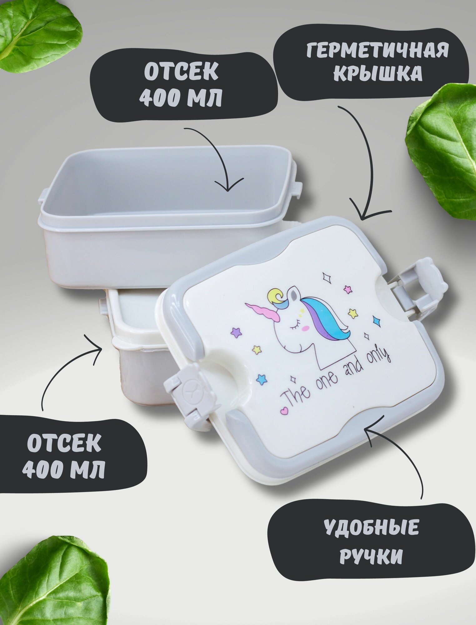 Ланч бокс "The one and only" для еды, контейнер секционный, пищевой пластик, 800 мл 656 ₽