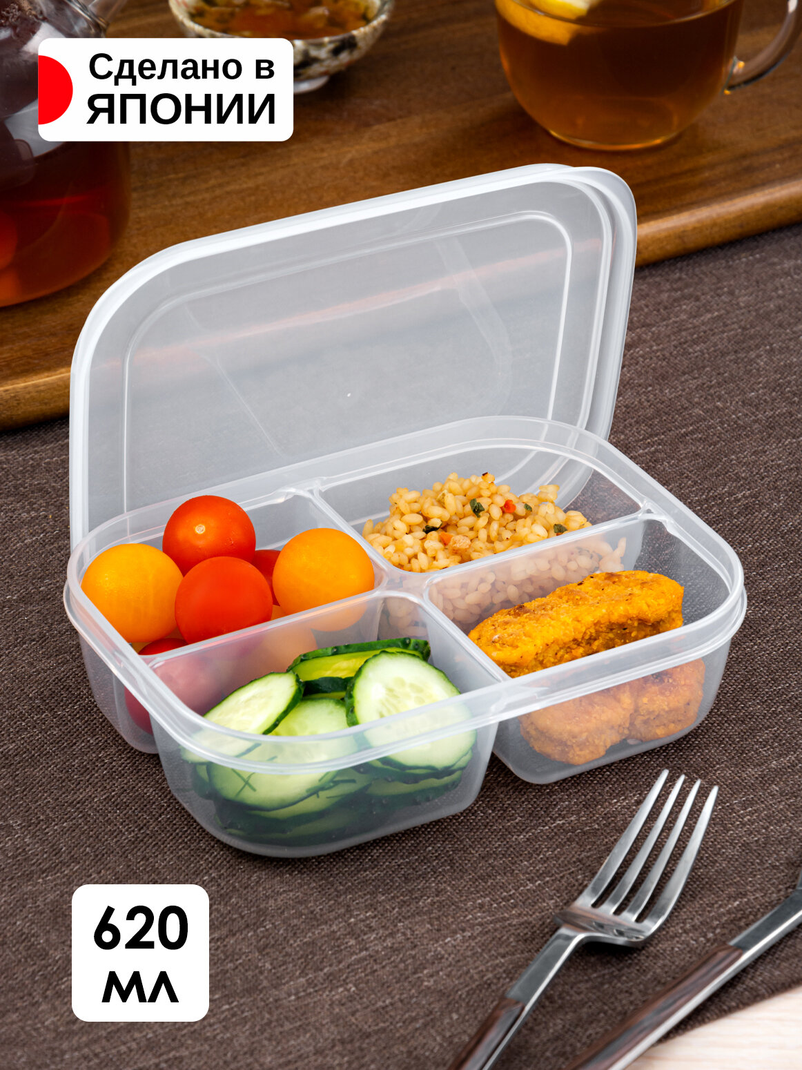 Отзывы на Контейнер для еды пластиковый с крышкой ланч бокс, 4 отделения, 620 мл; 17х12,7х4,9