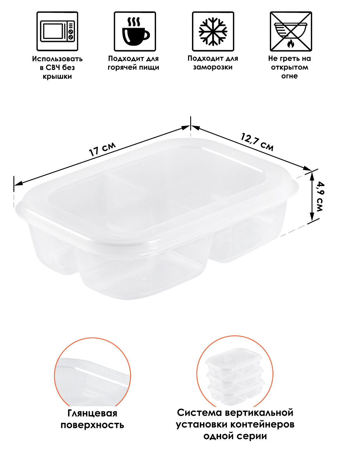 10 цен на Контейнер для еды пластиковый с крышкой ланч бокс, 4 отделения, 620 мл; 17х12,7х4,9