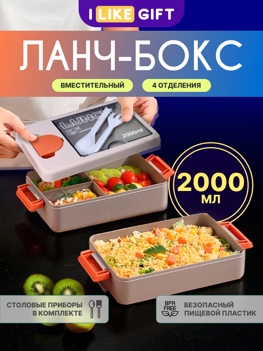 Отзывы на Ланч бокс "Food time" для еды с отделениями и приборами двухъярусный, 2000 мл