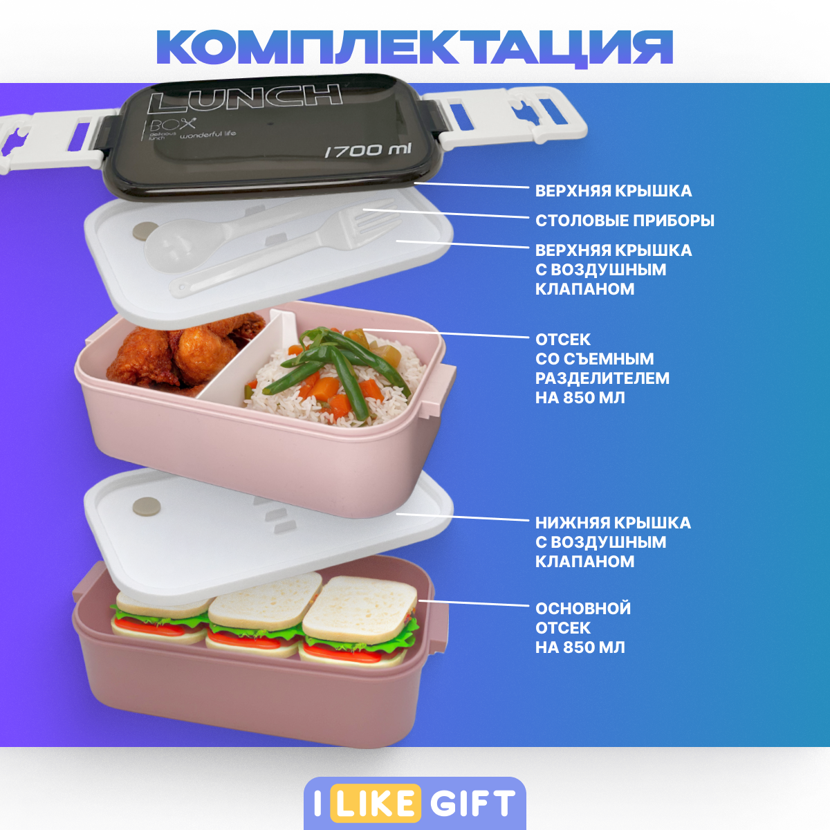 Отзывы на Ланч-бокс "New style" с отделениями и приборами, розовый, 2 секции, пластик, 1700 мл