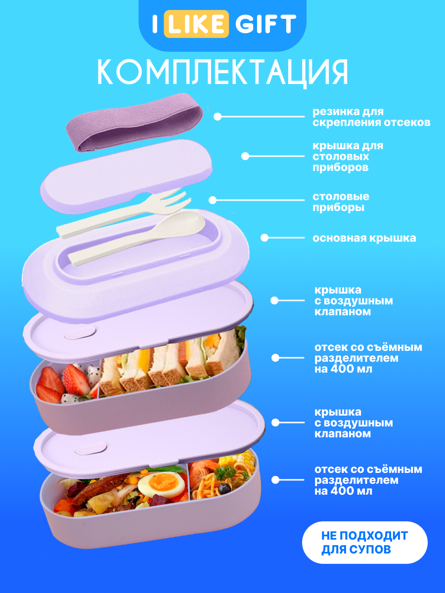 Отзывы на Ланч бокс для еды с приборами двухъярусный, пищевой пластик, 800 мл