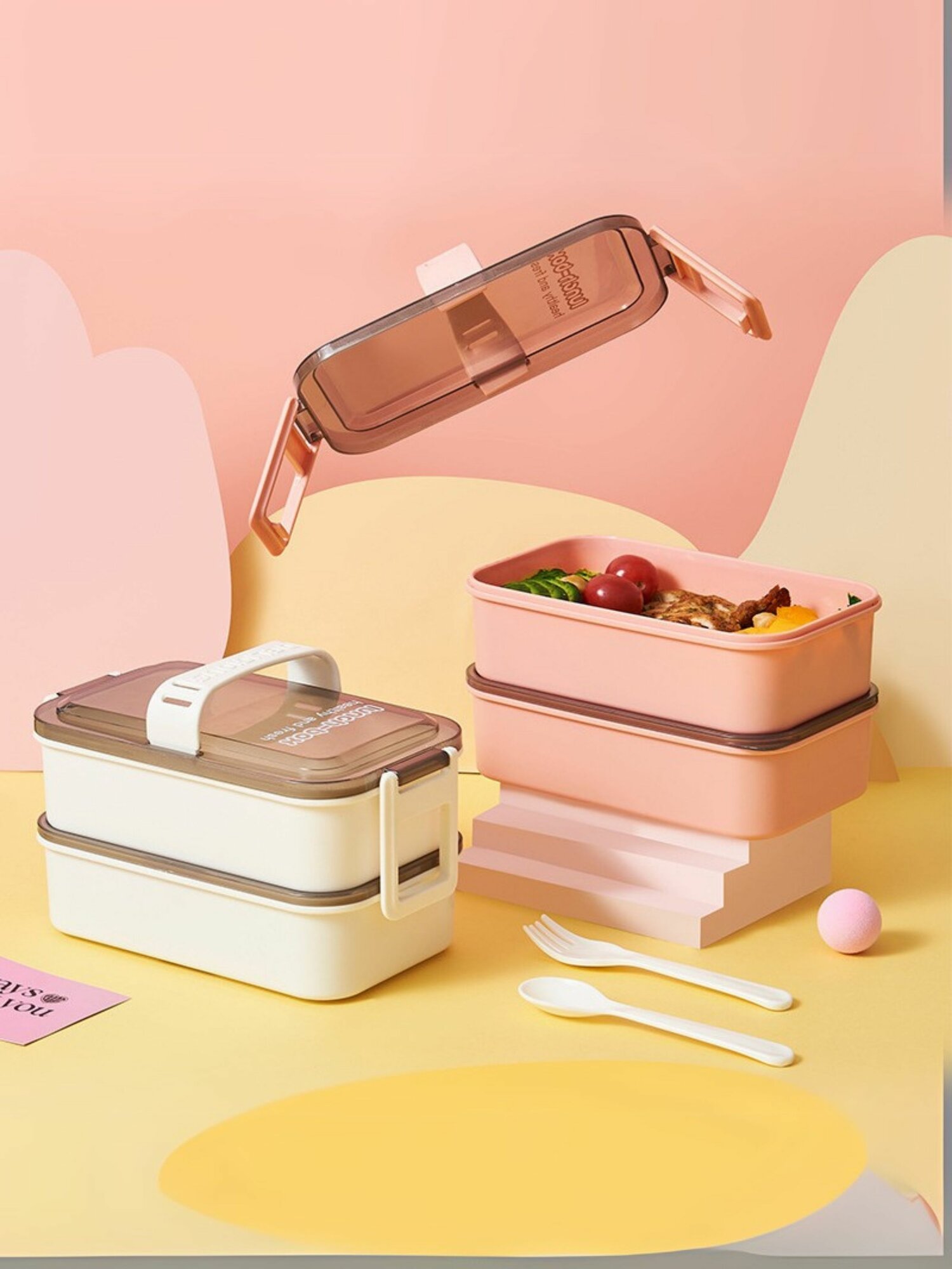 Ланч бокс для еды с приборами двухъярусный, пищевой пластик, 800 мл 727 ₽