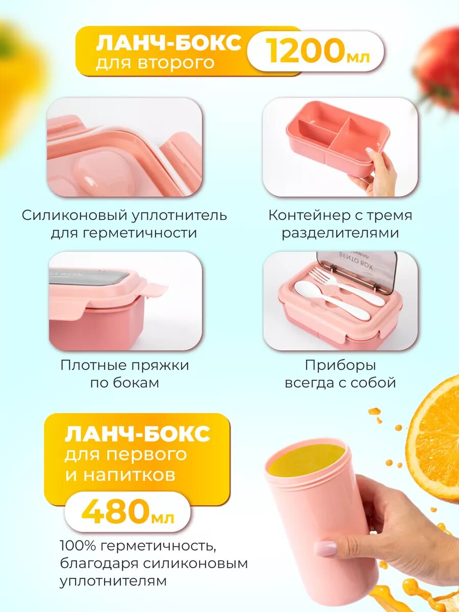 Ланч бокс Vesscole с отделениями для еды и приборами с сумкой информация: