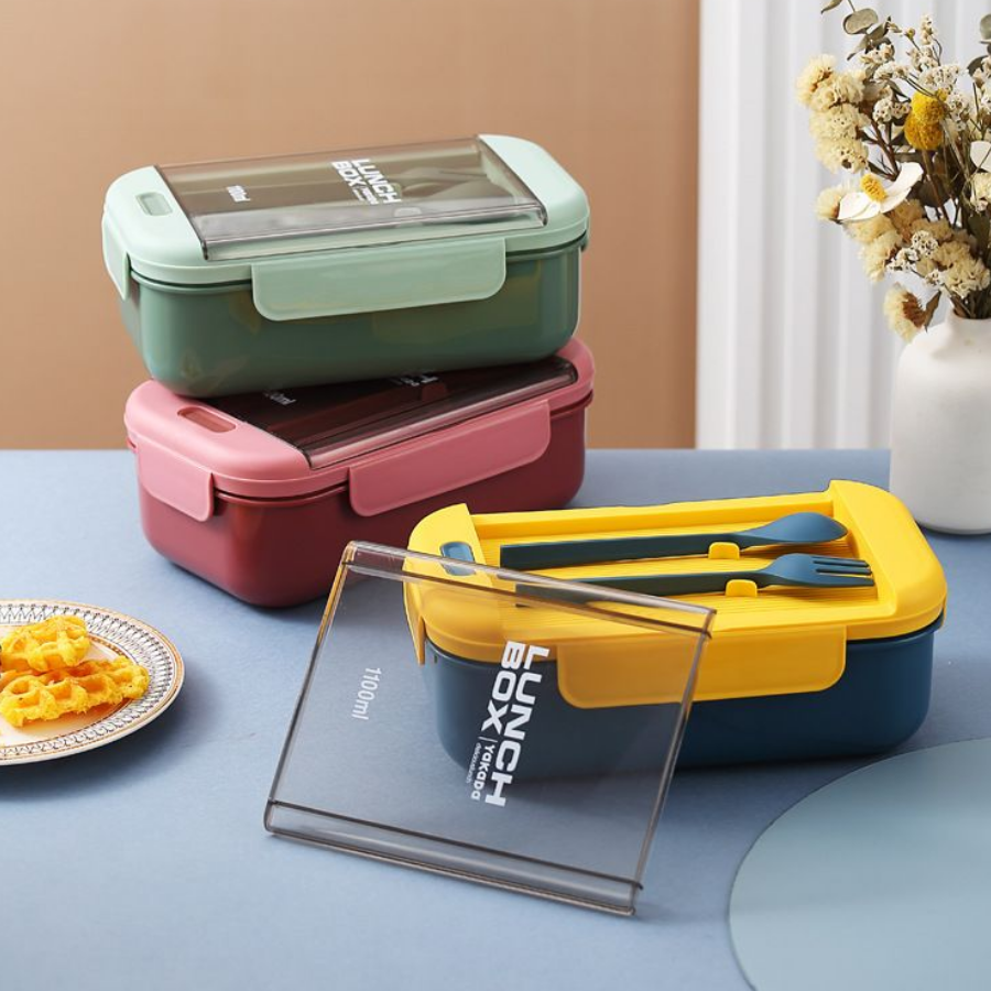10 цен на Ланч-бокс Homzon с отделениями, приборами и крышкой с клапаном, объем 1100 мл