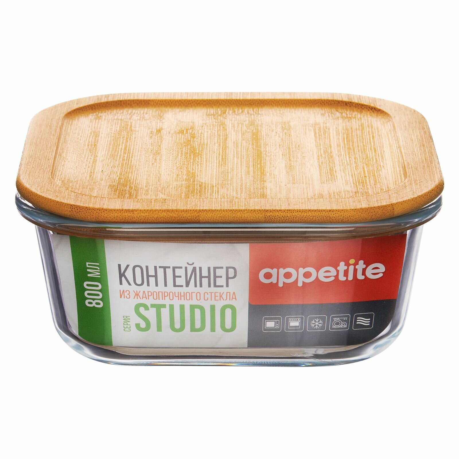 Контейнер стеклянный прямоугольный 630мл с бамбуковой крышкой Studio TM Appetite 850 ₽