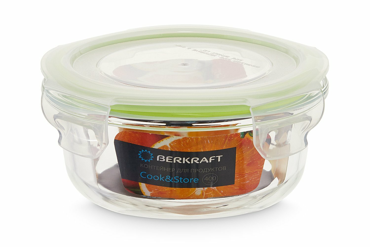10 цен на Контейнер для еды BERKRAFT 22HDL0304-L06, 14х6х14 см, 0.4 л, стекло, прозрачный