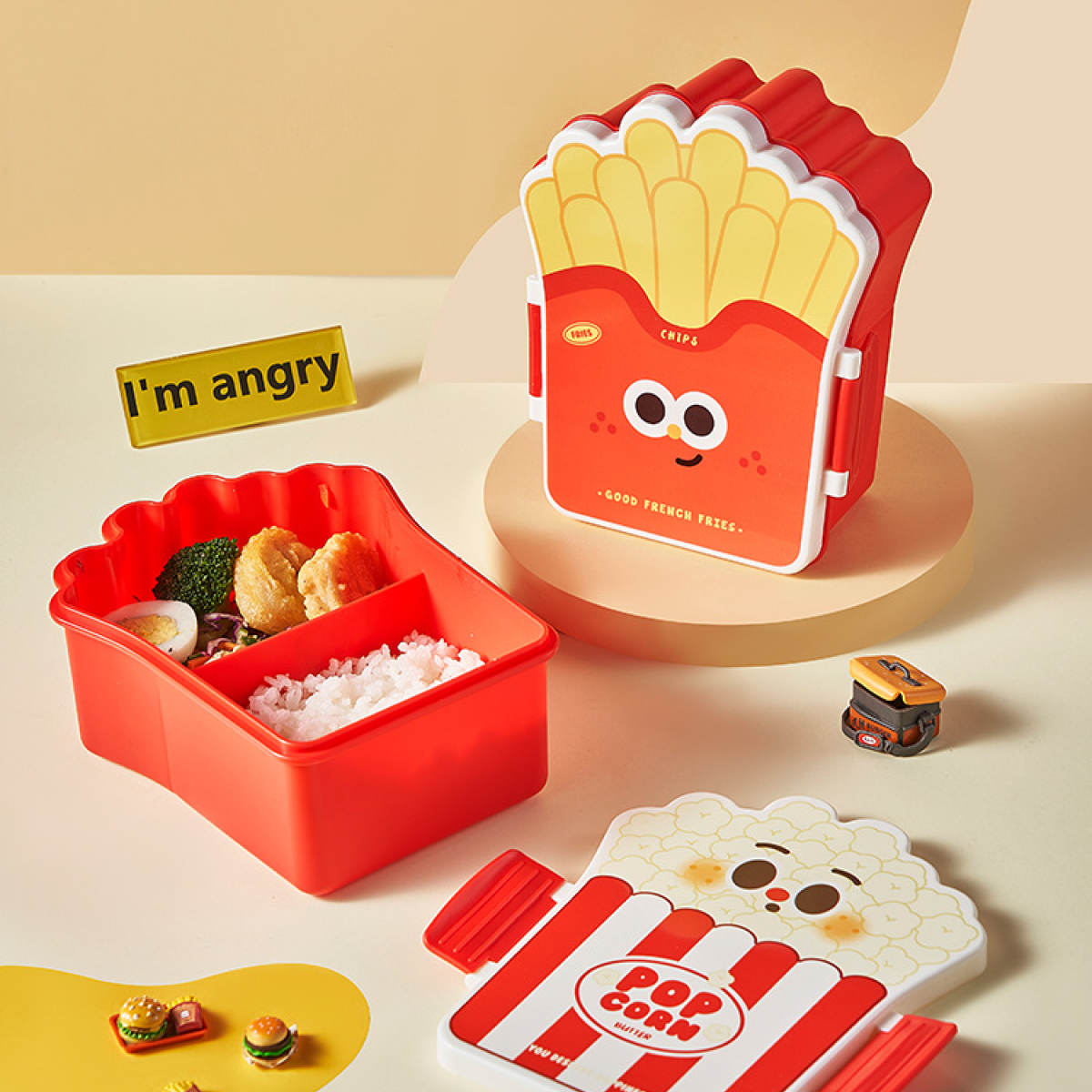 10 цен на Ланч бокс детский в школу, контейнер для еды с приборами, Картошка Фри