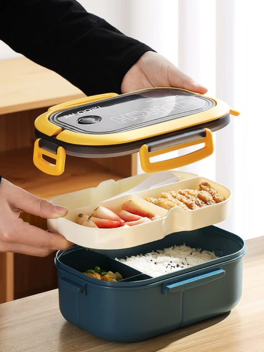 Ланч бокс контейнер для еды с раздельными секциями - синий , 25х18х7 / металлический