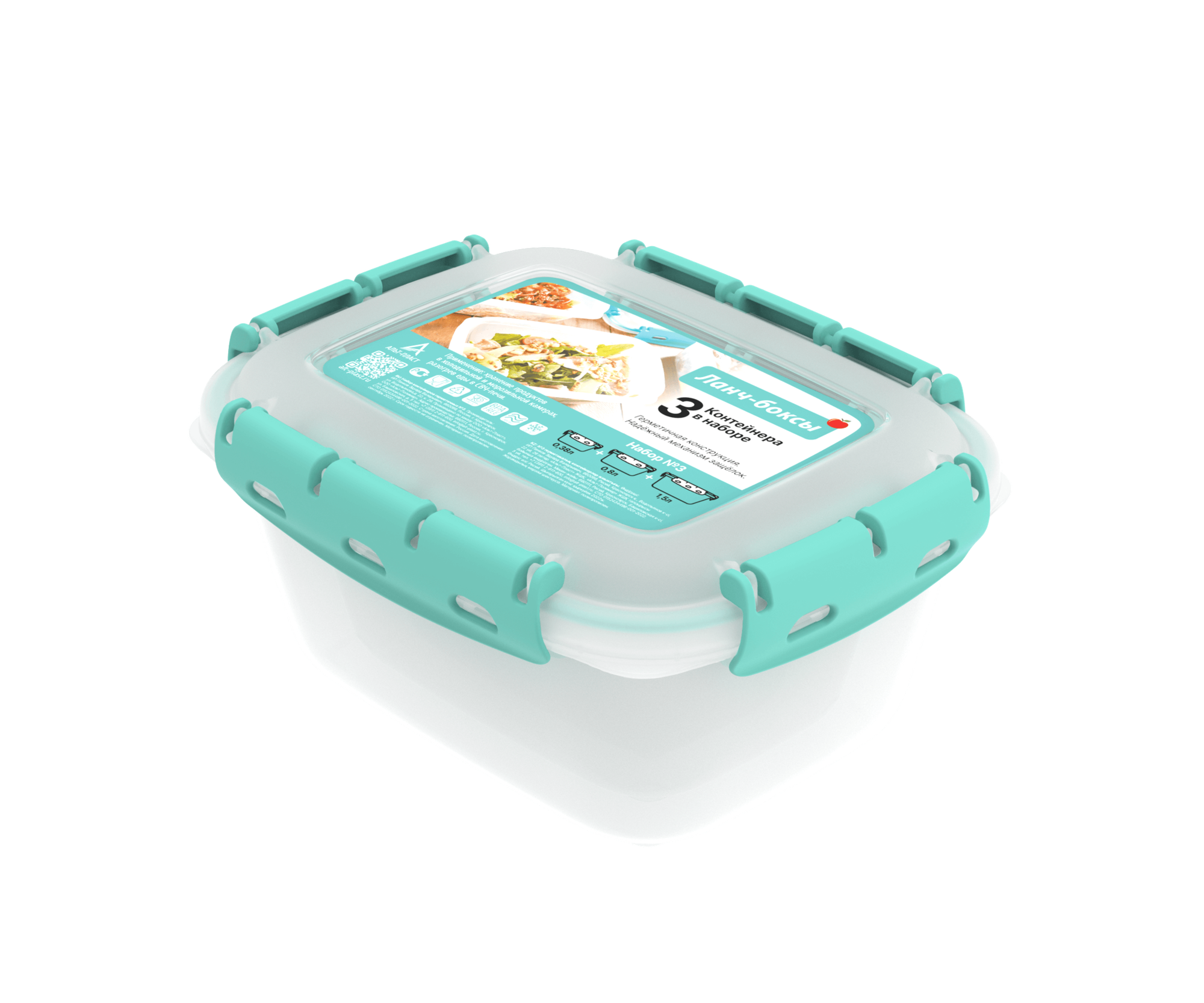 Набор №3 из 3 штук контейнеры герметичные (ланч-боксы) Альт-Пласт 0,38л; 0,8л; 1,5л информация: