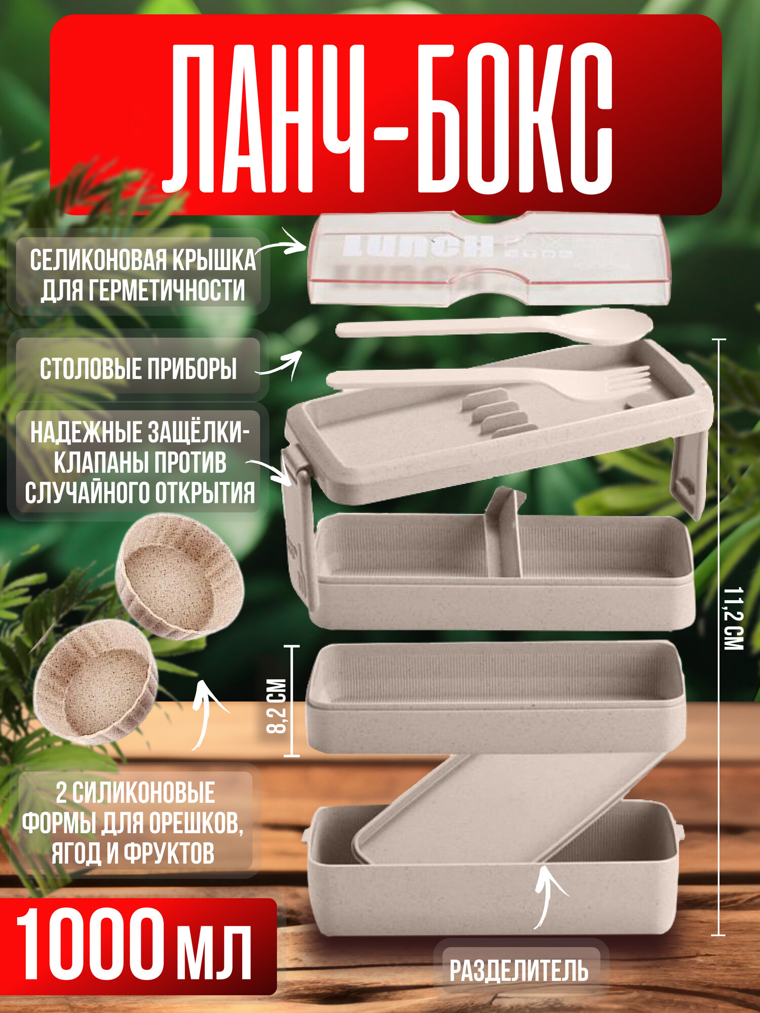 Отзывы на Ланч бокс с приборами герметичный с сумкой контейнер для еды, 8 предметов, бежевый