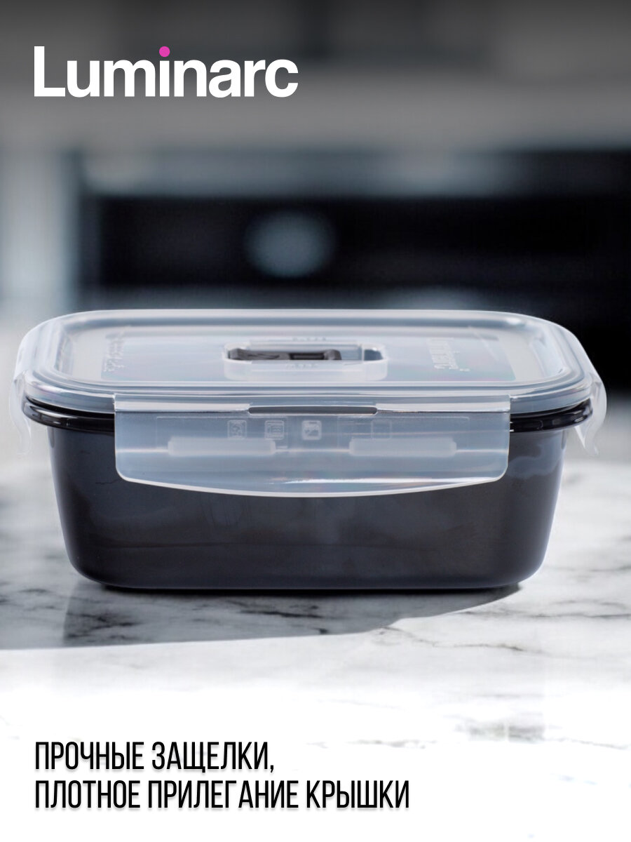 10 цен на Контейнер стеклянный с крышкой для хранения Luminarc BLACK BOX чёрный 820 мл прямоугольный