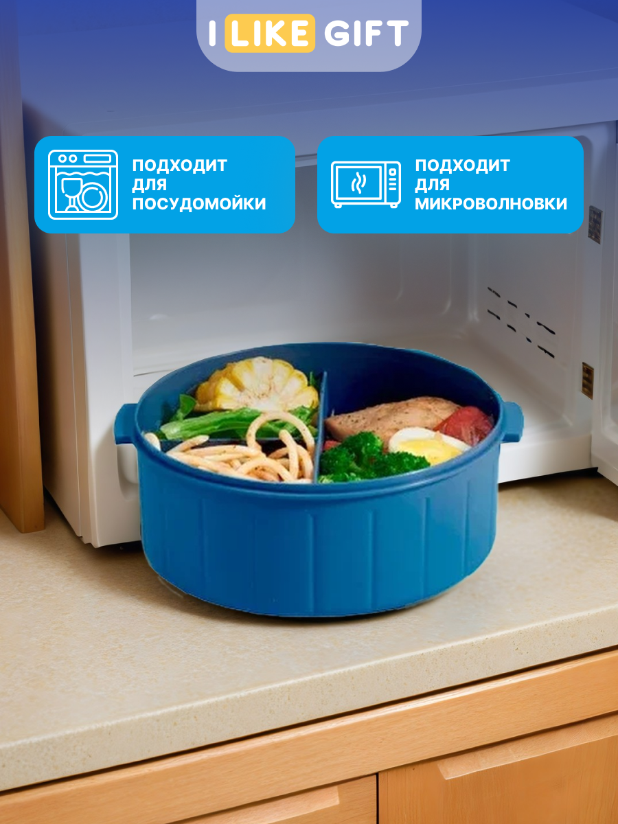 Ланч бокс контейнер для еды с раздельными секциями - синий , 25х18х7 / металлический