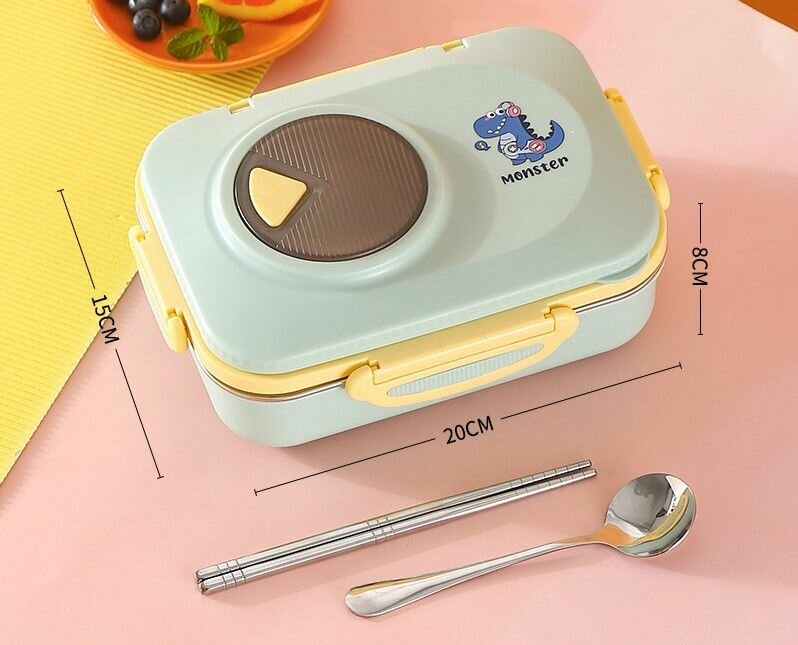 Ланч-бокс для еды детский в школу из нержавеющей стали с приборами с отделениями/ ланч бокс детский/контейнер для еды из нержавейки информация: