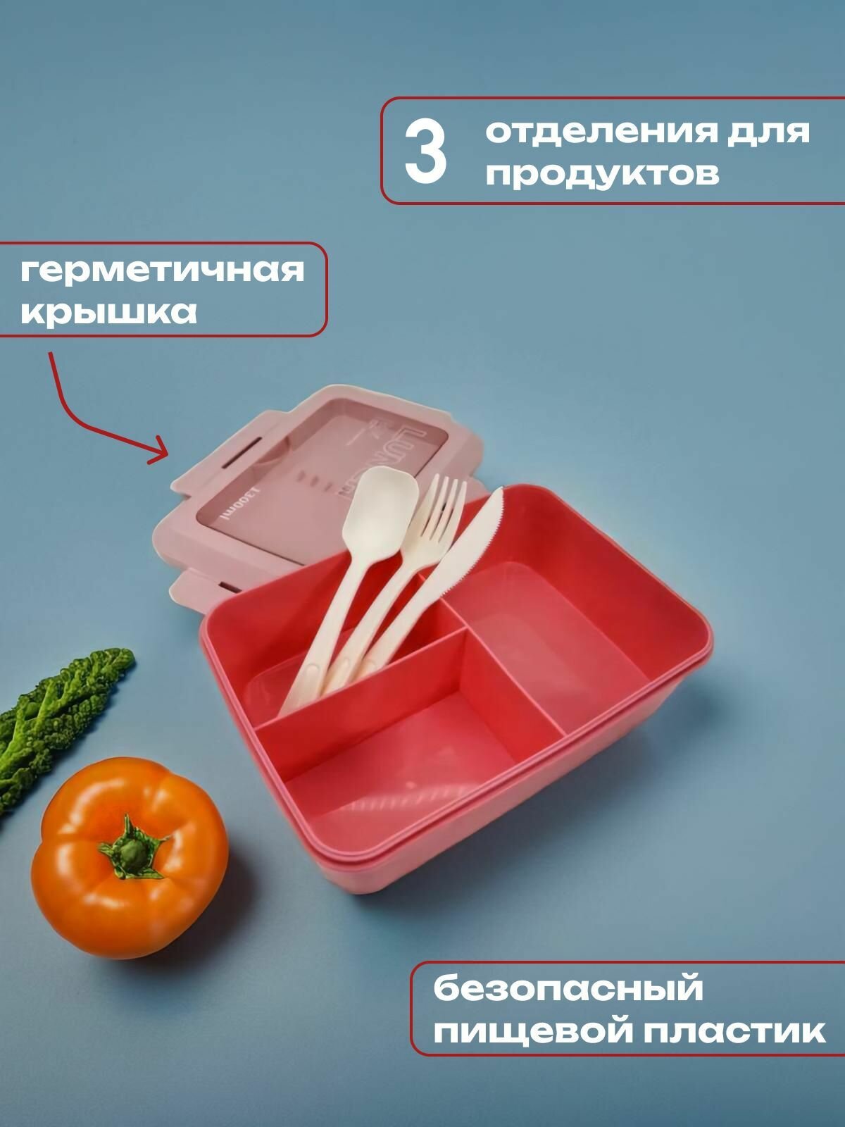 Ланч бокс "Tasty food" для еды с отделениями и приборами, пластик, 1100 мл 919 ₽