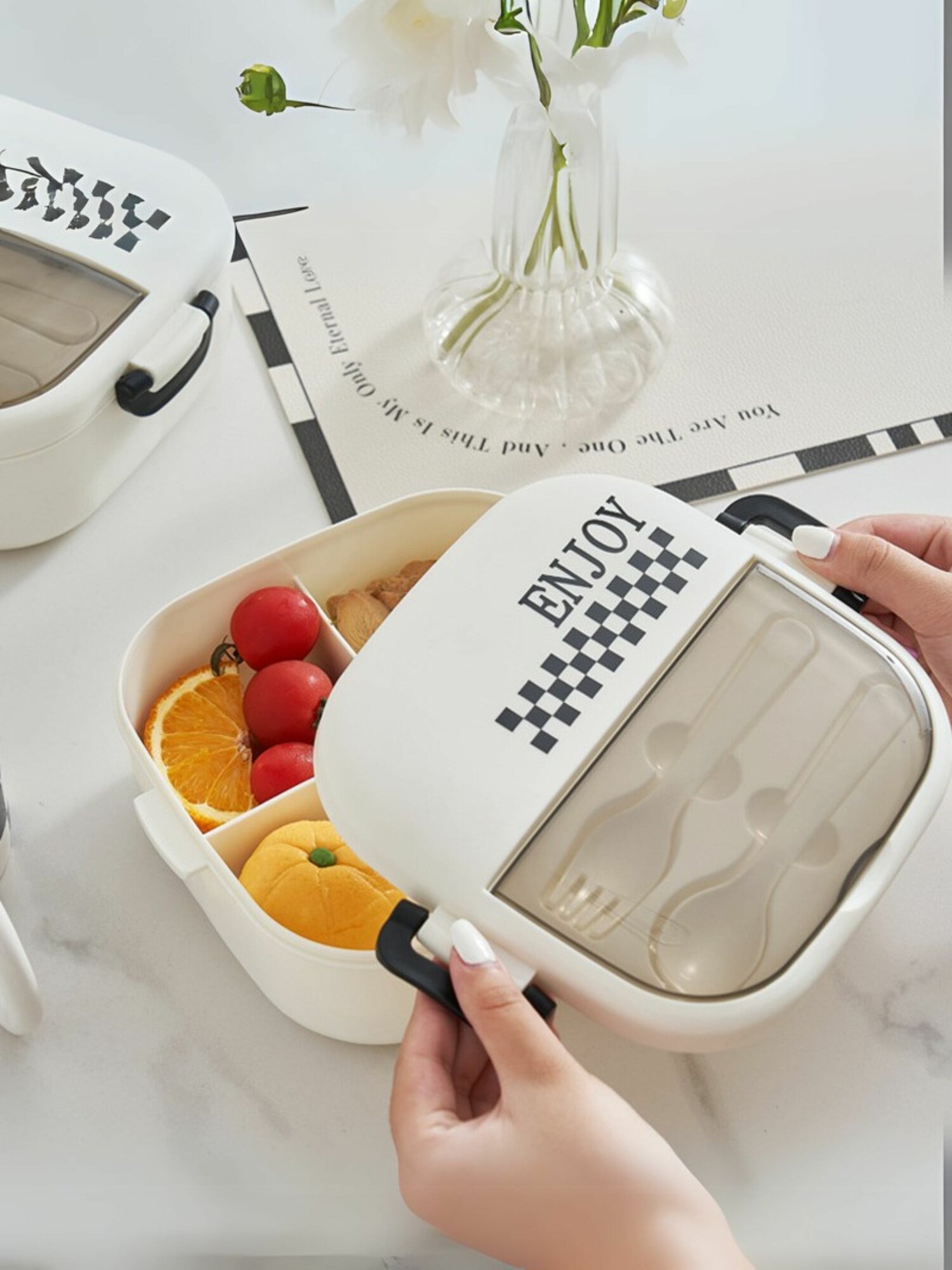 Ланч бокс для еды «Enjoy» с раздельными секциями и приборами, пищевой пластик, 1600 мл информация: