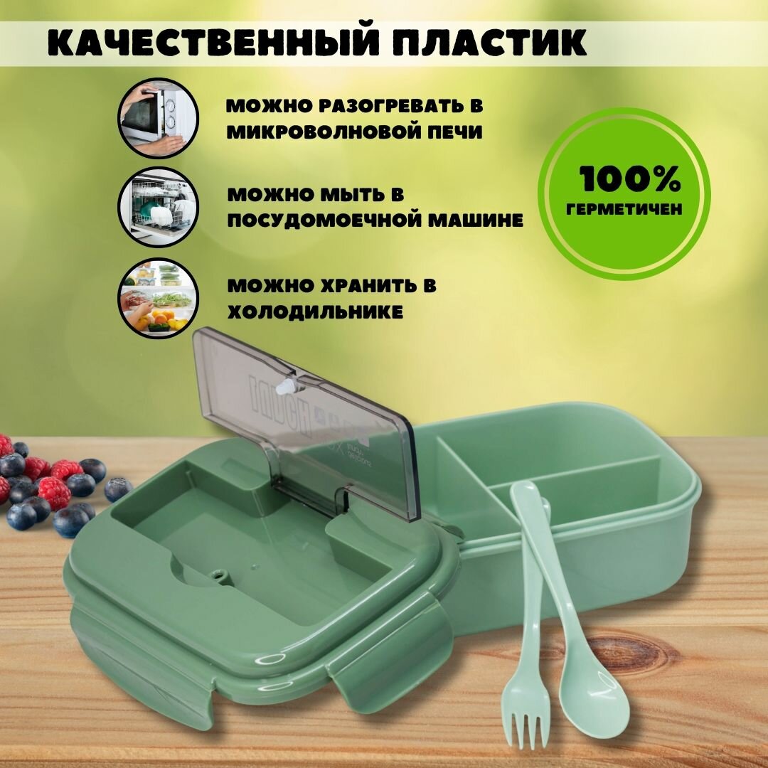 Отзывы на Ланч-бокс "Сolor classic" для еды секционный с приборами, пищевой пластик, 1000 мл