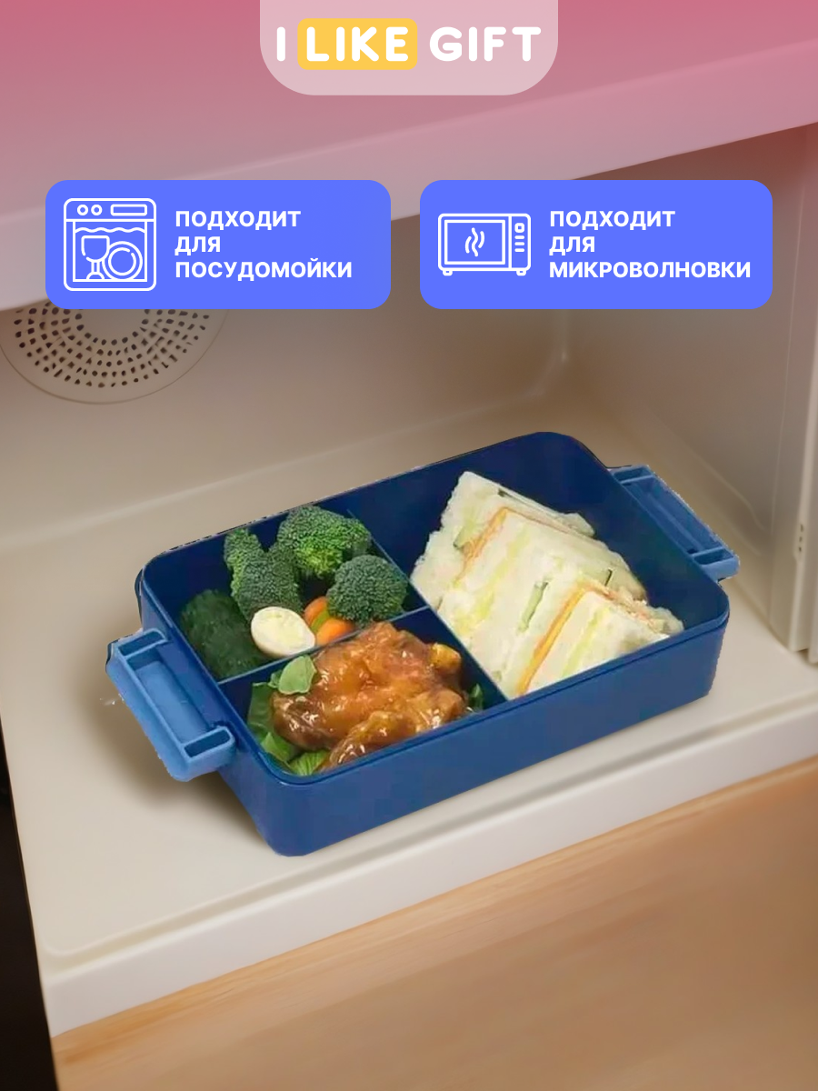 Ланч бокс контейнер для еды с раздельными секциями - синий , 25х18х7 / металлический