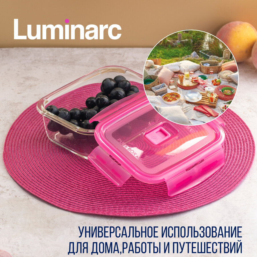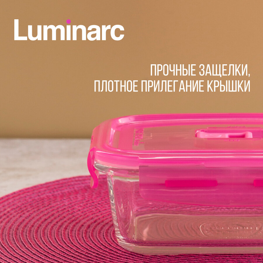Контейнер для еды стеклянный LUMINARC пюрбокс актив неон розовый 820мл прямоугольный информация: