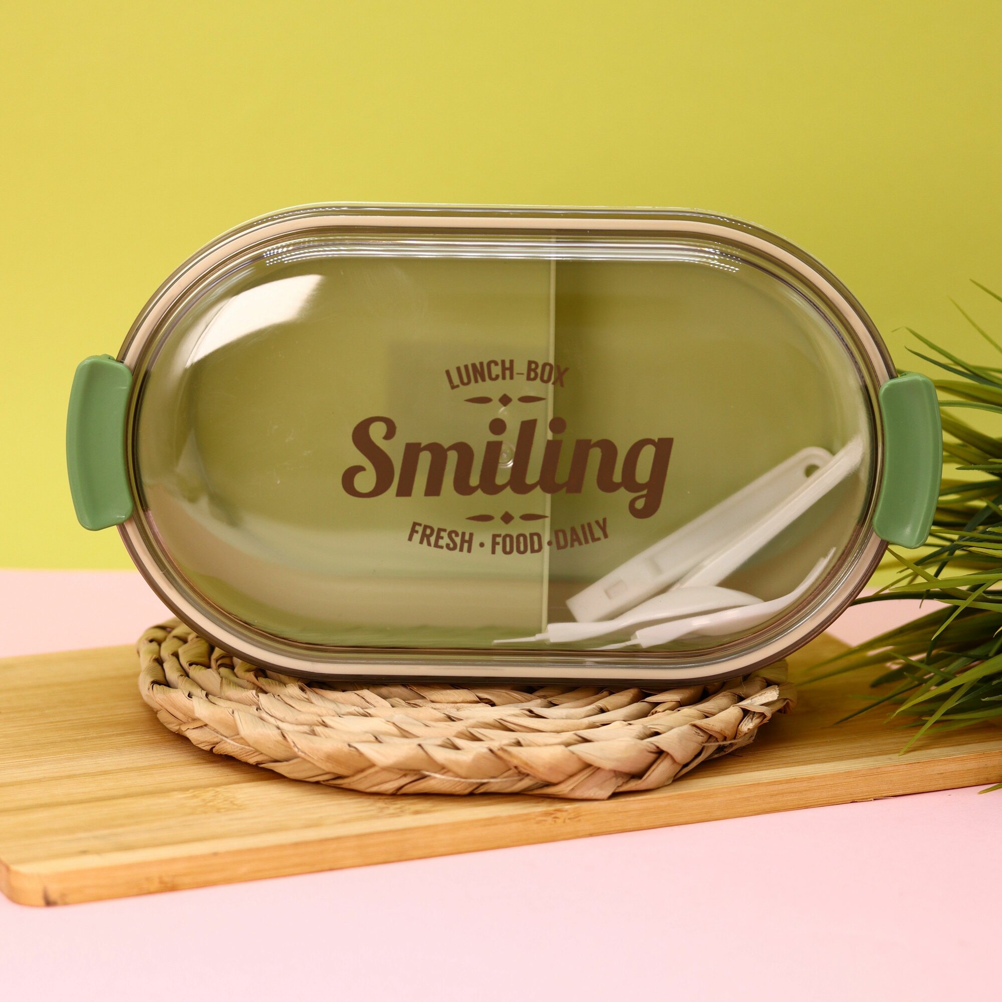 10 цен на Ланч бокс для еды "Smiling" секционный с приборами, пищевой пластик, 1200 мл