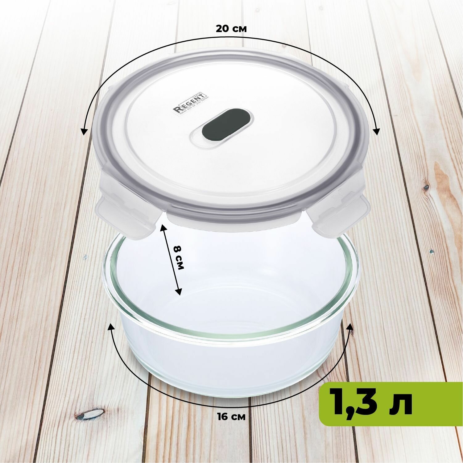 Контейнер для еды Regent inox стеклянный с крышкой для хранения продуктов, ланч бокс 1,3 л, круглый информация: