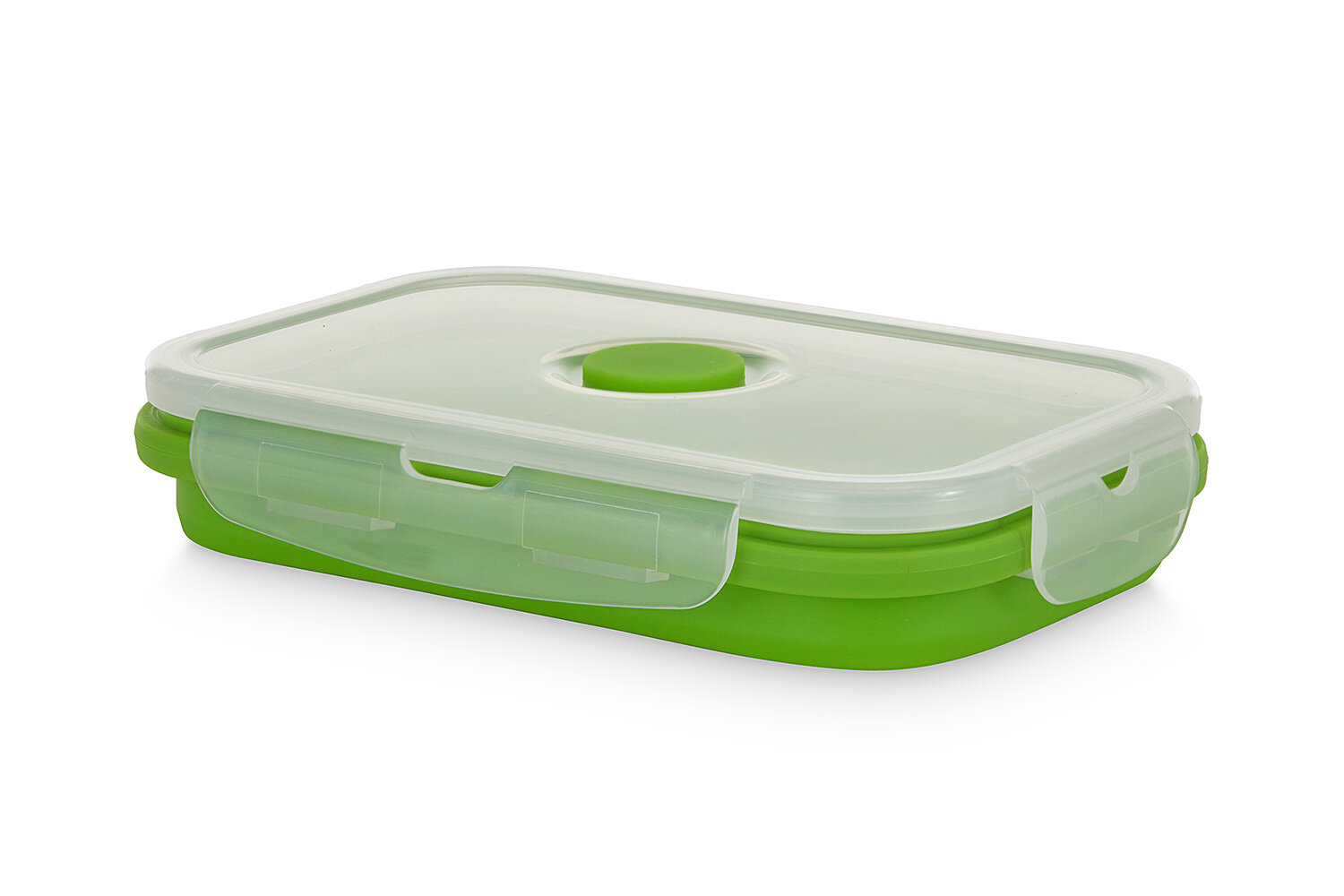 Контейнер для еды BERKRAFT Compact, 16.2х11х6.5 см, 0.5 л, складной, силикон, зеленый информация: