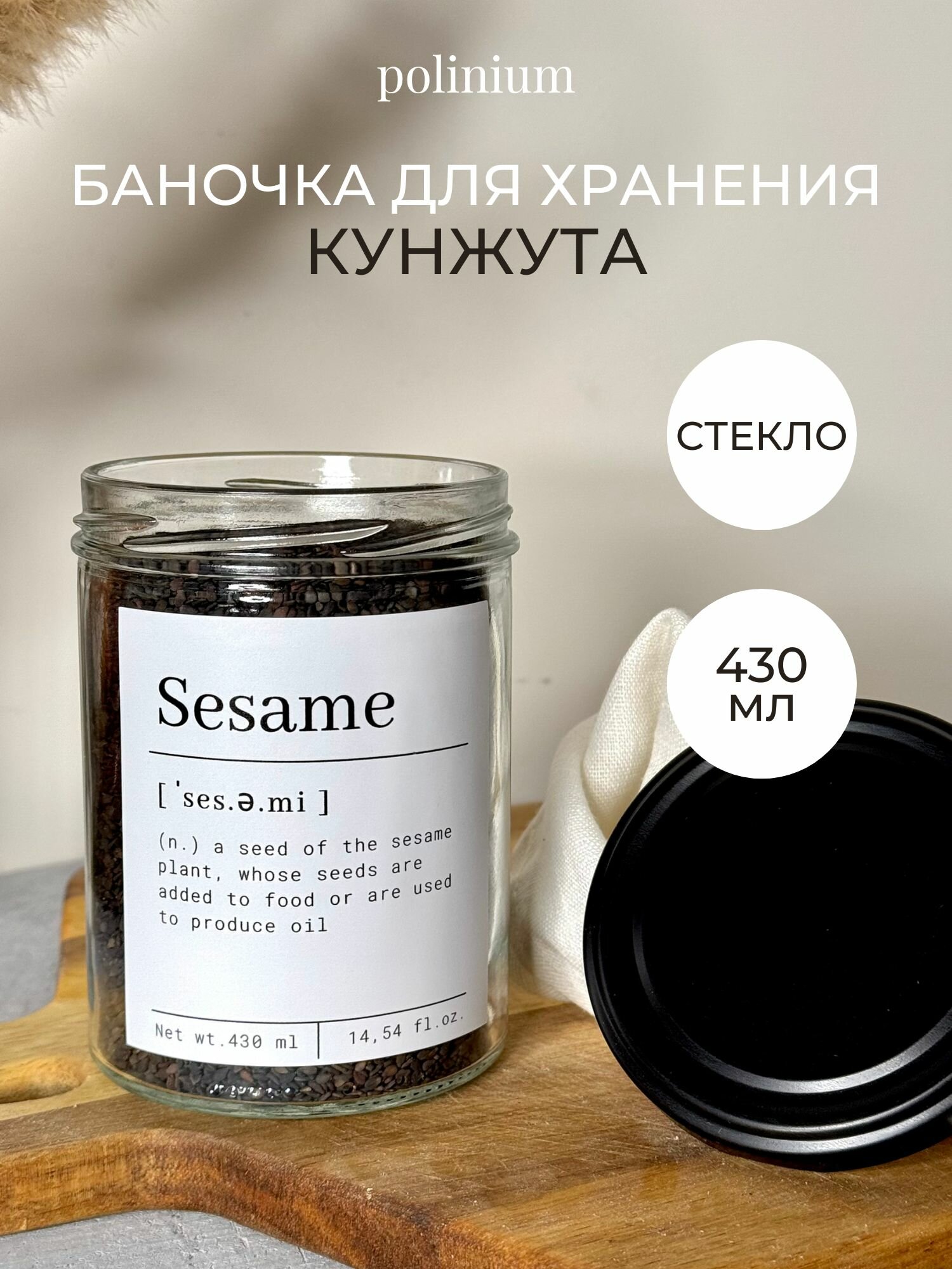 Банка для хранения кунжута стекло информация: