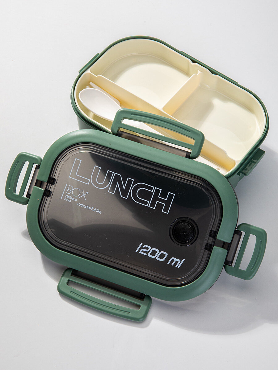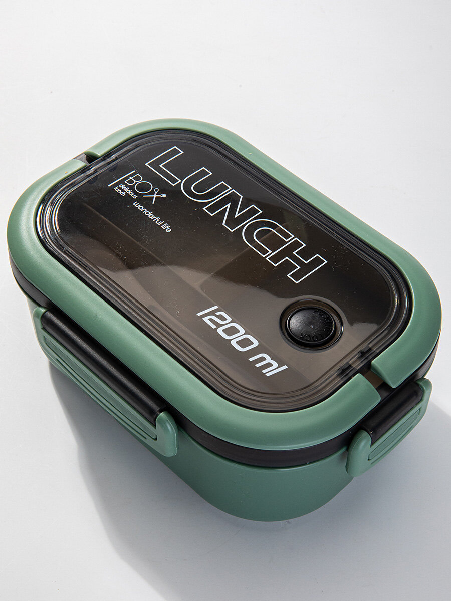 Отзывы на Ланч-бокс для еды пластиковый двухуровневый со столовыми приборами зеленый