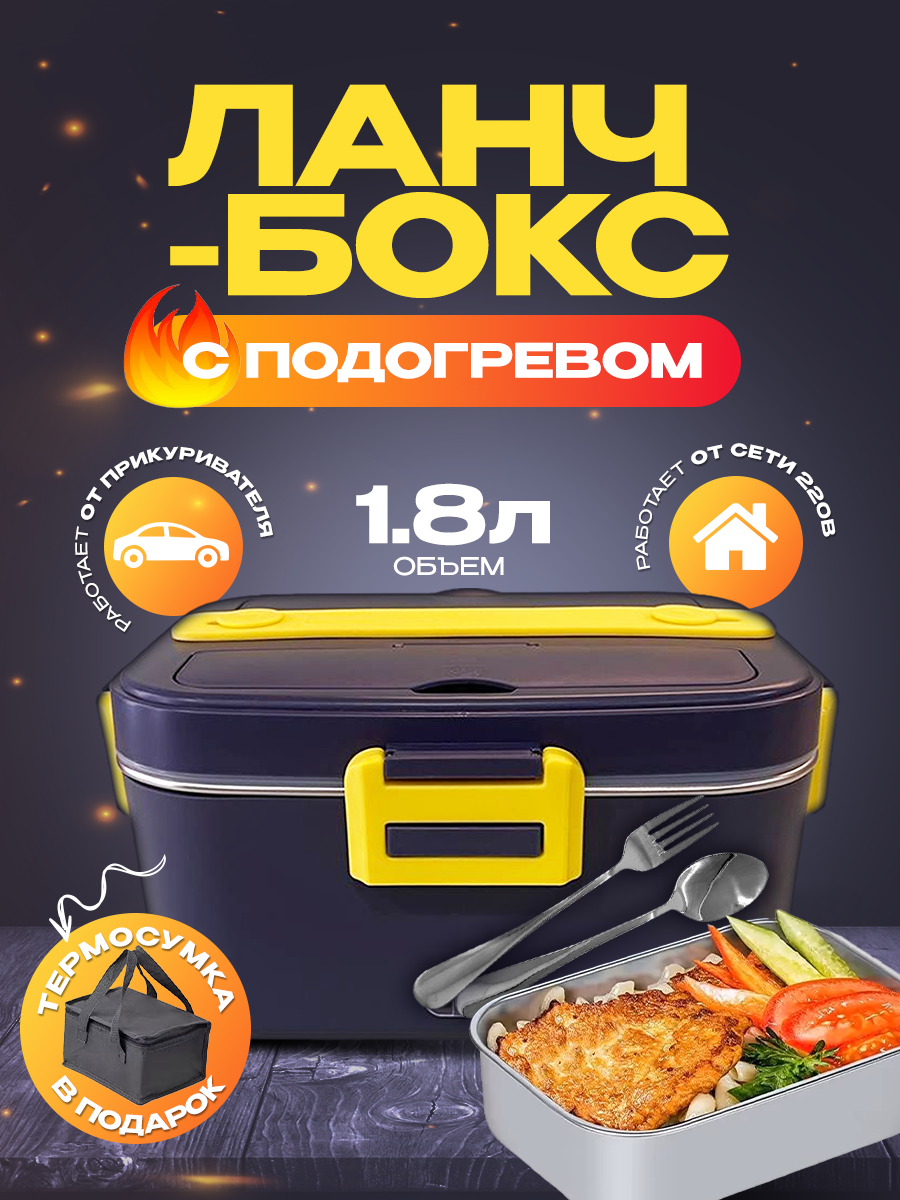 Отзывы на Ланч-бокс с подогревом от сети и прикуривателя объем 1,8л цвет сине-желтый