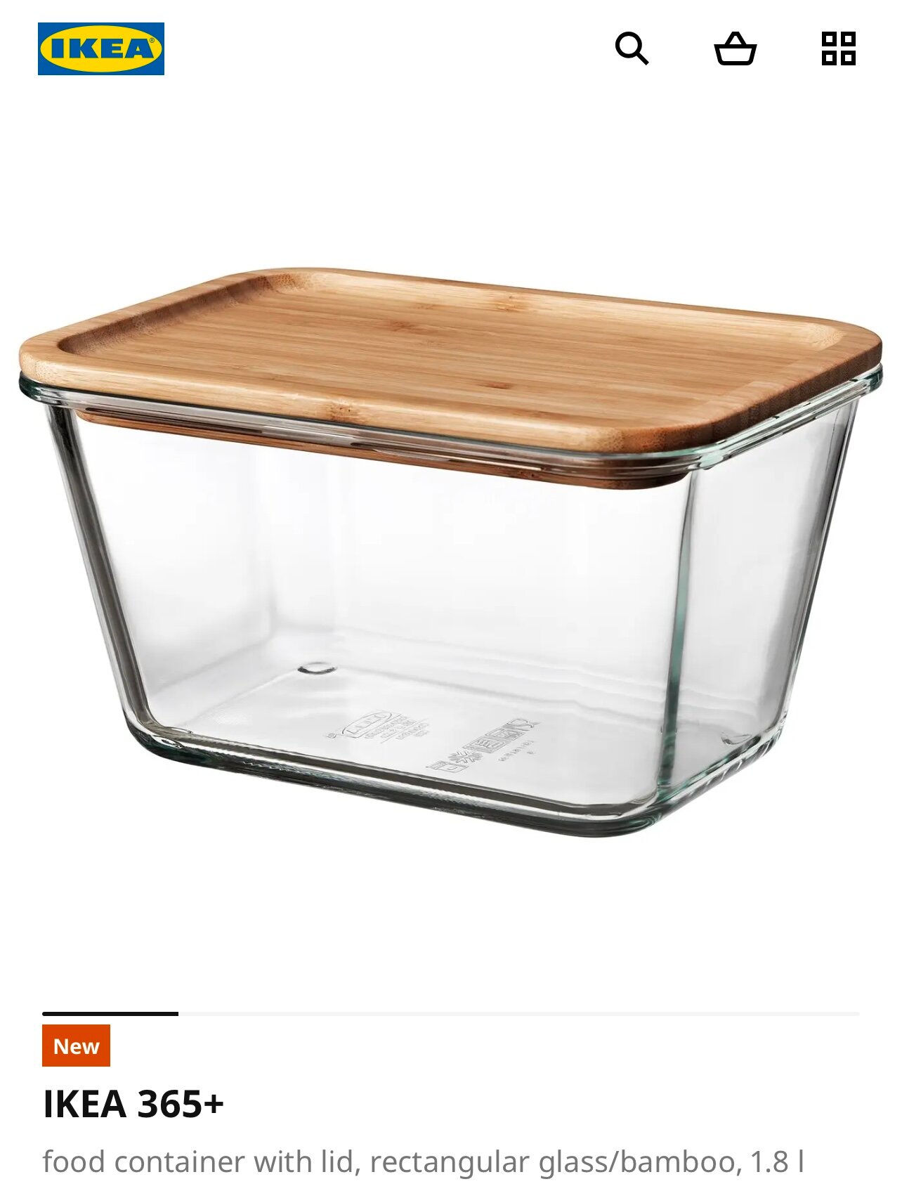 Отзывы на Пищевой термостойкий контейнер с крышкой IKEA 365+, прямоугольный, стекло/бамбук, 1,8 л