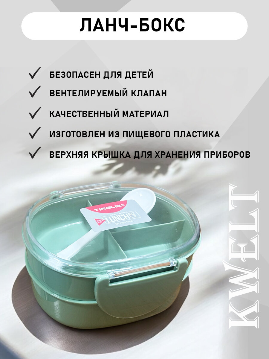 10 цен на Ланч-бокс "Компактный" KWELT , с 3 секциями, с ложкой, зеленый