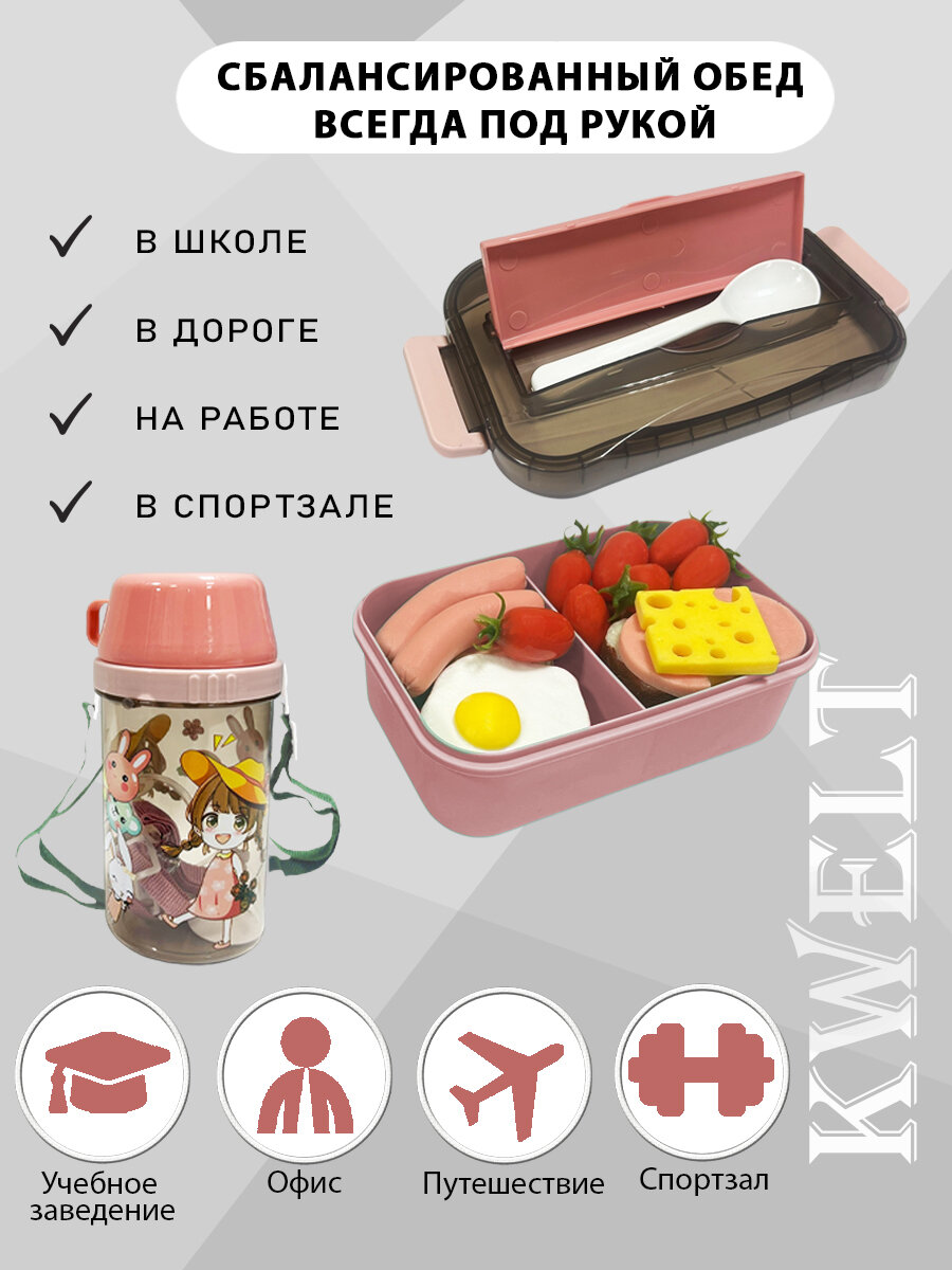Ланч-бокс KWELT SmileBox Duo, пластик, герметичный, для СВЧ, розовый/светло-розовый 652 ₽