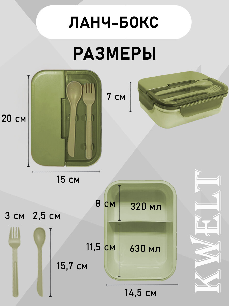 Отзывы на Ланч-бокс KWELT, пищевой пластик, прямоугольный, защелки, 950мл