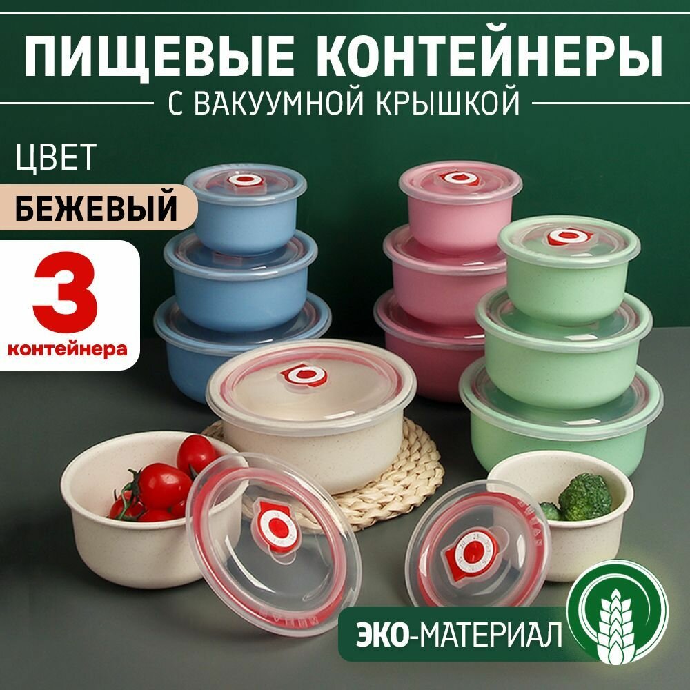 Отзывы на Набор пищевых контейнеров из пшеничной соломы с герметичной крышкой, 3шт в наборе (бежевый, 16.4*11.1*16.5см)