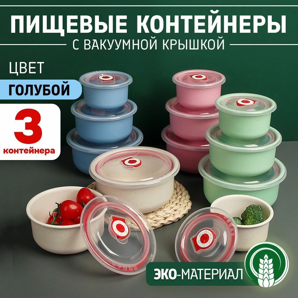 10 цен на Набор пищевых контейнеров из пшеничной соломы с герметичной крышкой, 3шт в наборе (голубой, 16.4*11.1*16.5см)