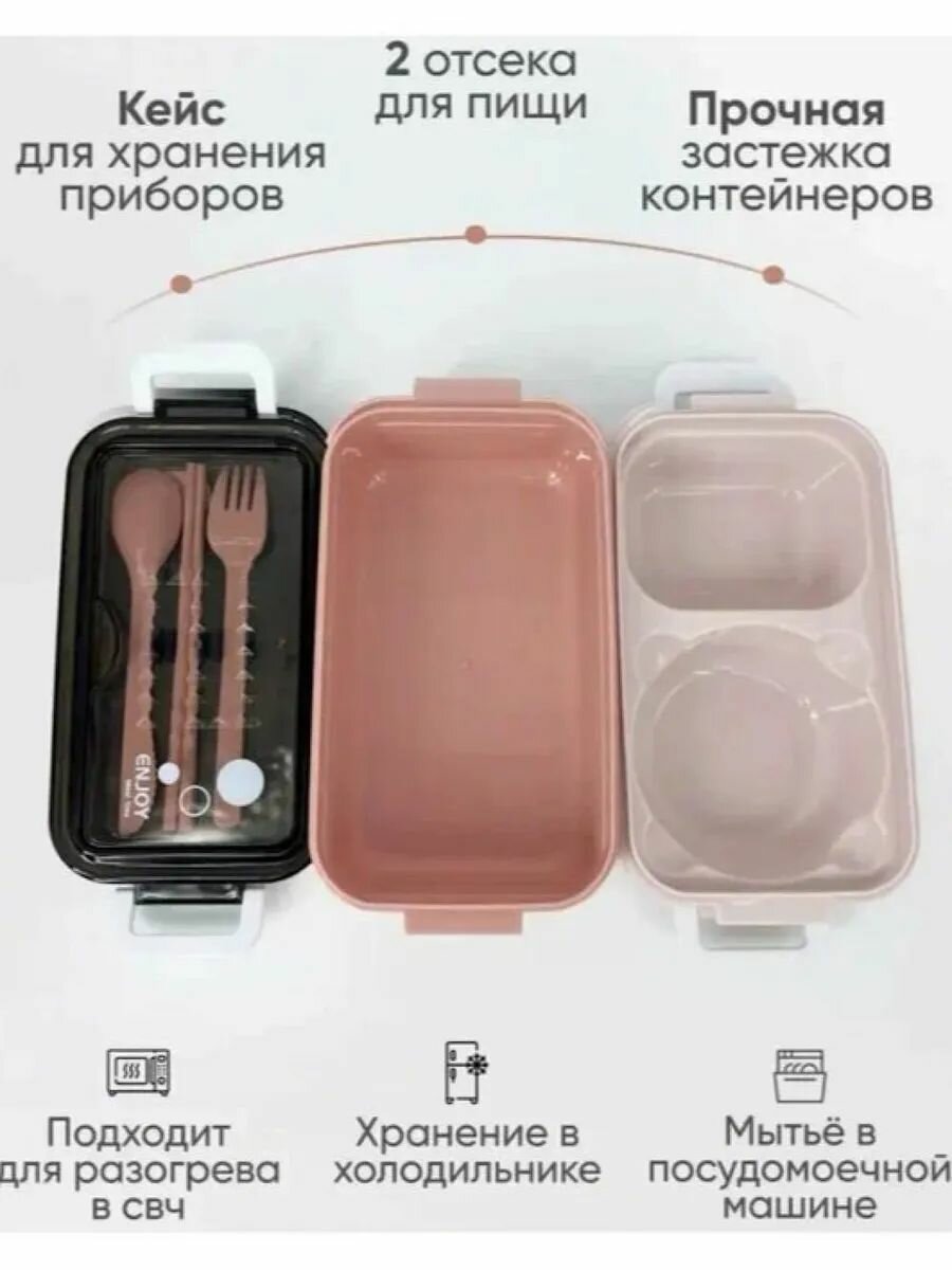 Контейнер для еды Don Pavlova, герметичный ланч бокс с 3-мя отделениями и приборами, 1400мл, розовый 1 776 ₽