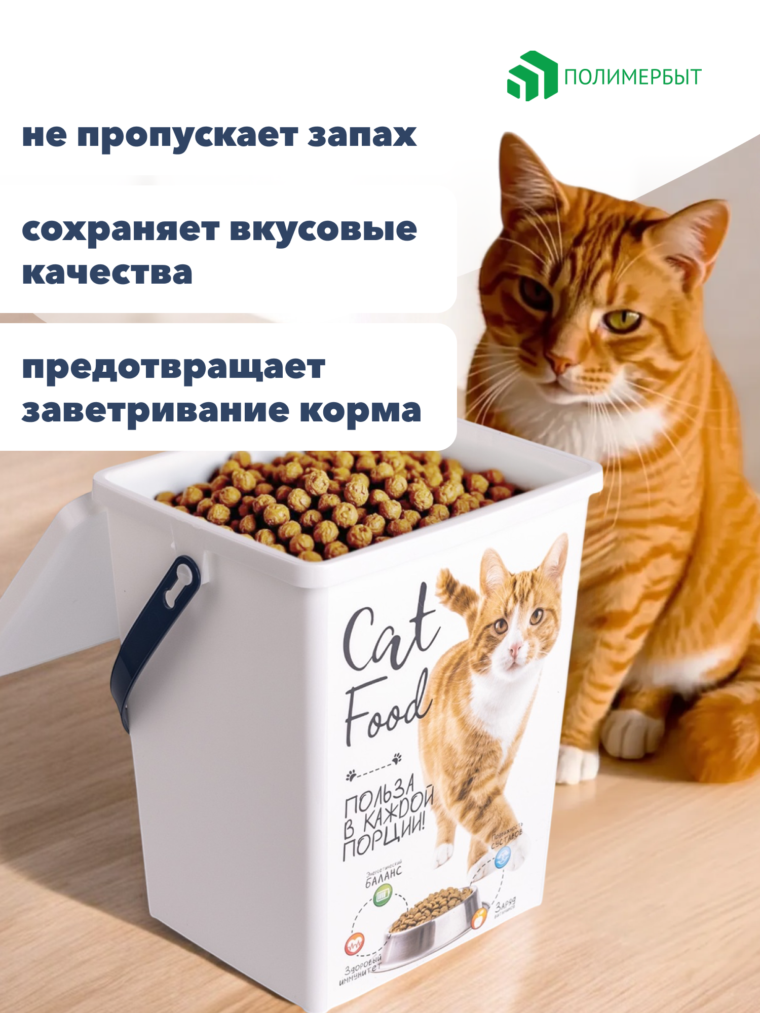 Контейнер для корма ПОЛИМЕРБЫТ "Кошки", пластик, белый, 8,5 литров информация: