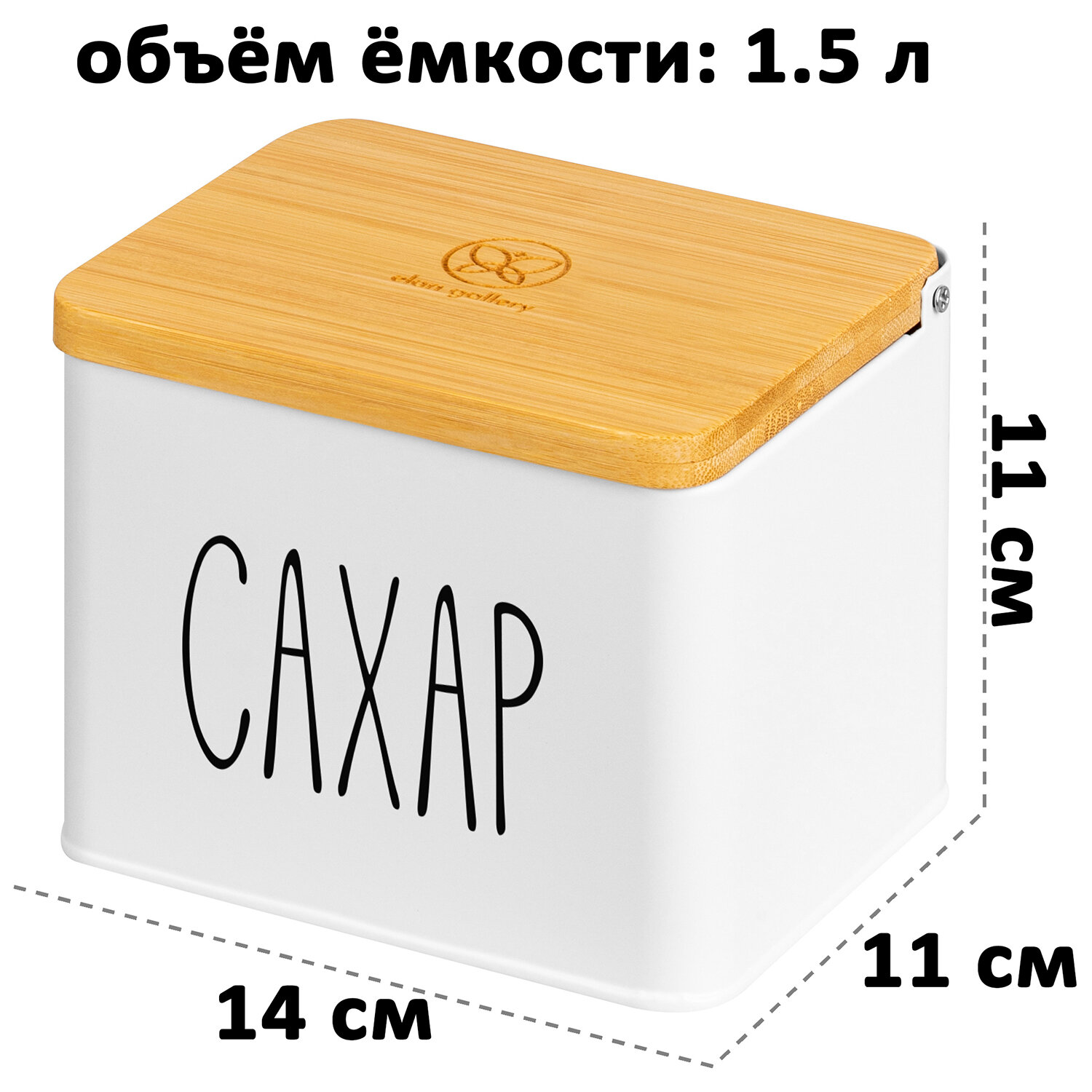 Банка для хранения сыпучих продуктов / соли /специй 1,5 л Elan Gallery Сахар, 14х11х11 см, белая, с деревянной крышкой информация: