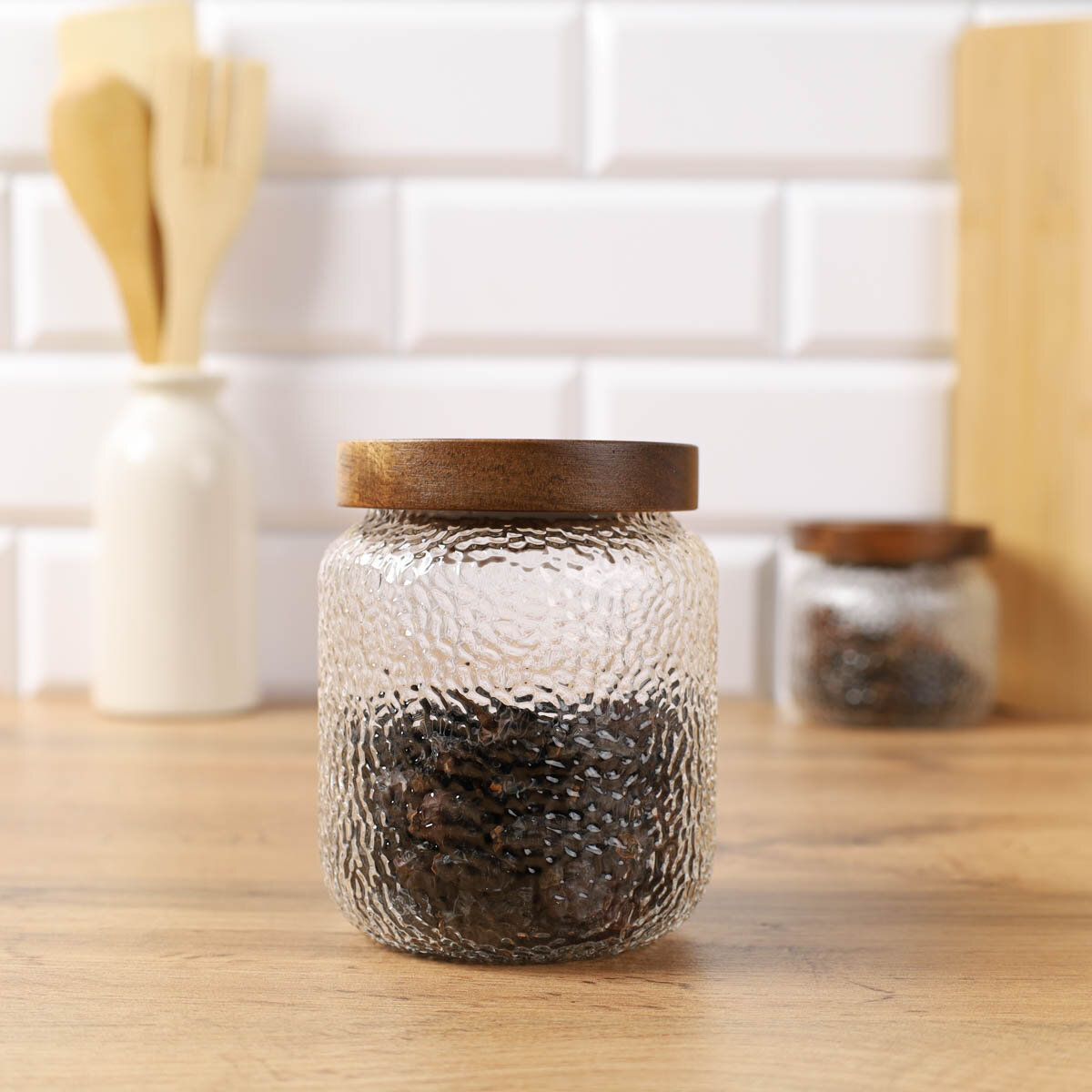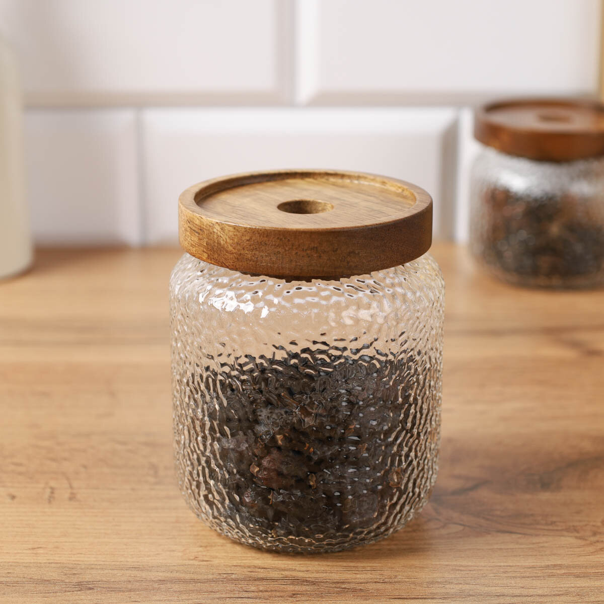10 цен на Банка для хранения сыпучих 500 мл, 11.8х9.4 см, деревянная крышка, стекло