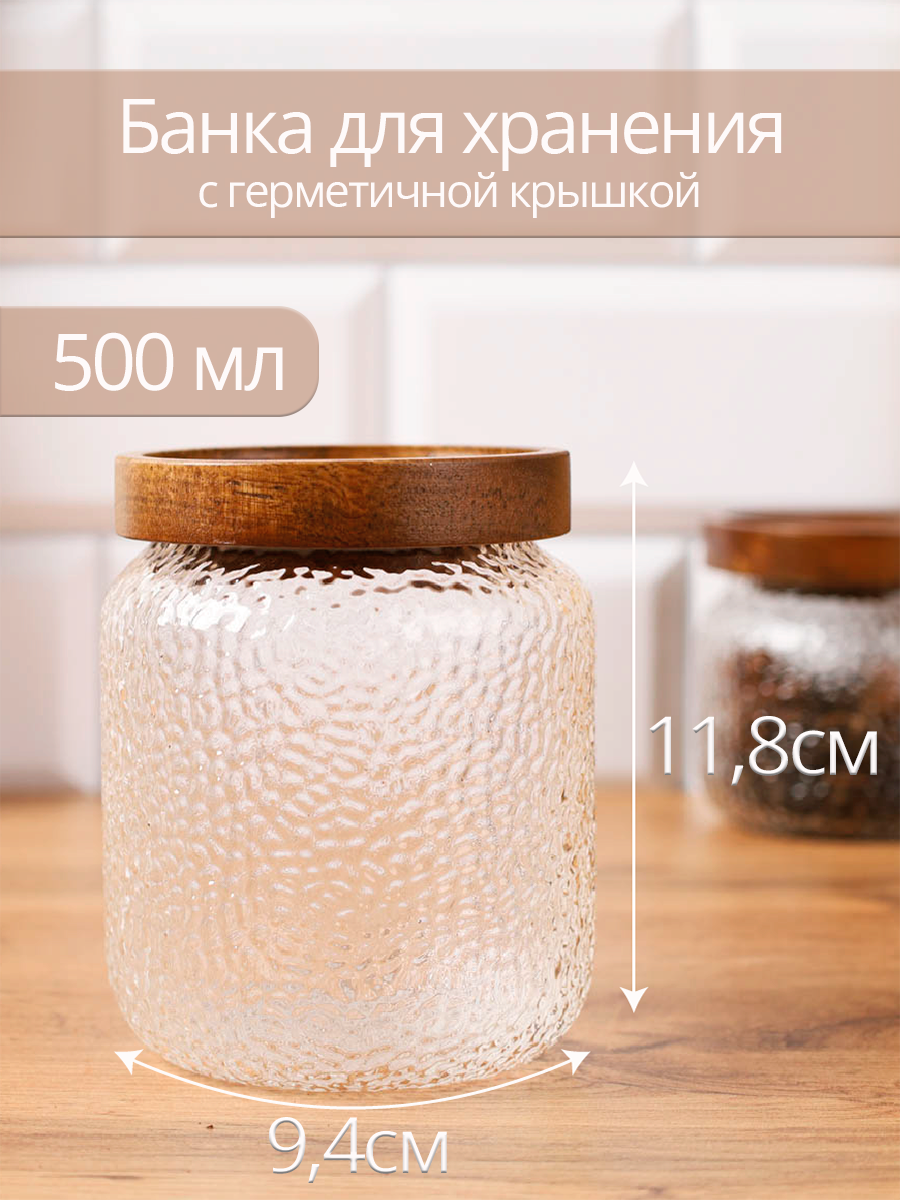 Банка для хранения сыпучих 500 мл, 11.8х9.4 см, деревянная крышка, стекло информация: