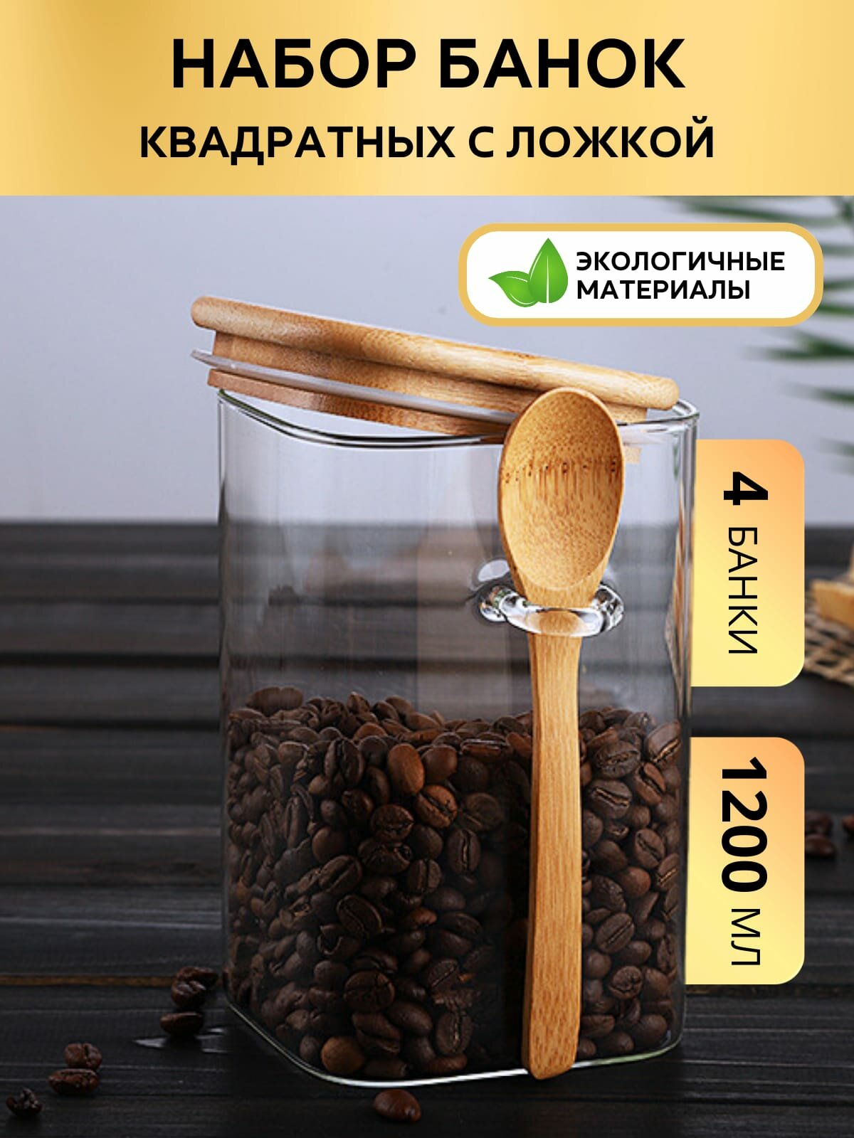 Отзывы на Банка для хранения продуктов, стеклянная, с крышкой, с ложкой, 1200 мл, набор из 4 штук