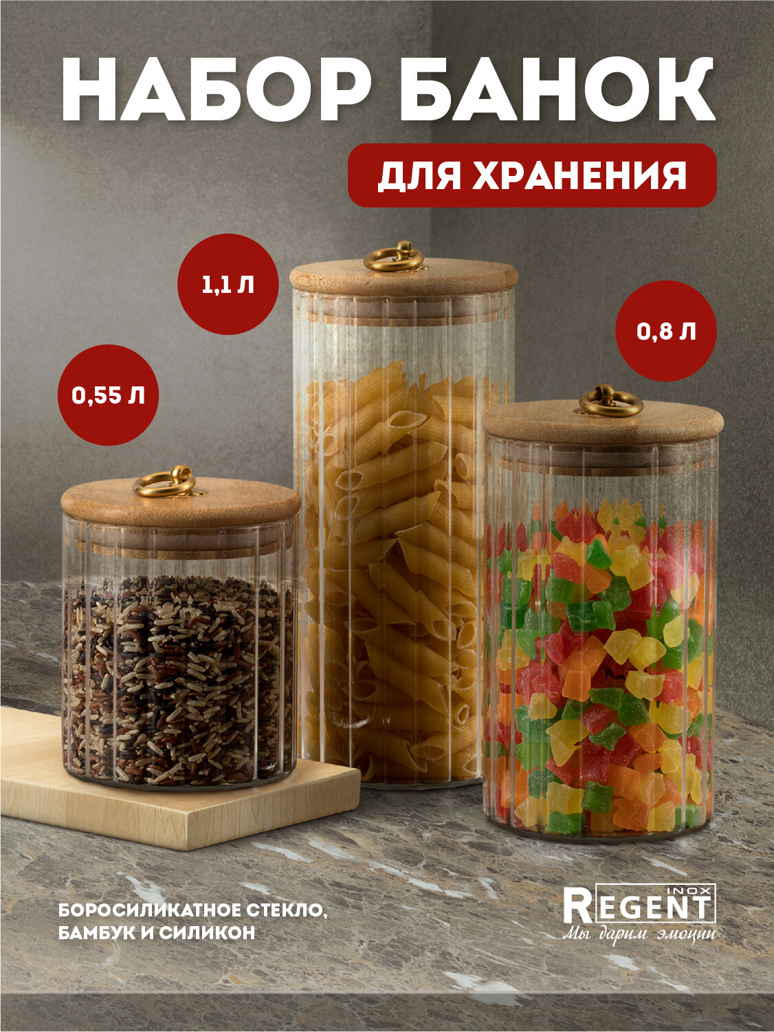 Банки для сыпучих продуктов Regent inox Linea TORRE, контейнер для хранения 0,8 л, 0,55 л, 1,1 л информация:
