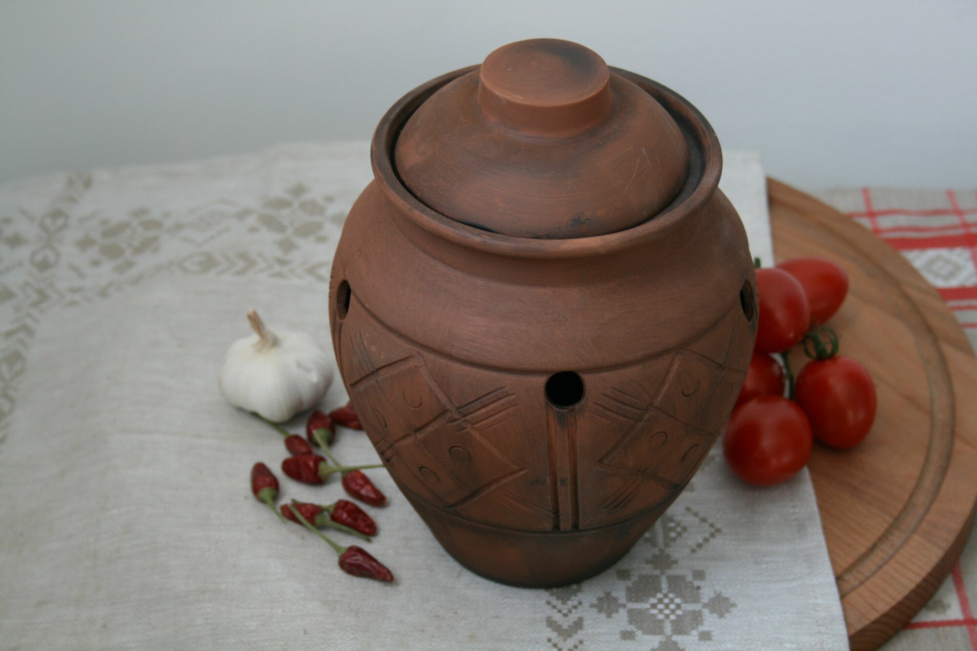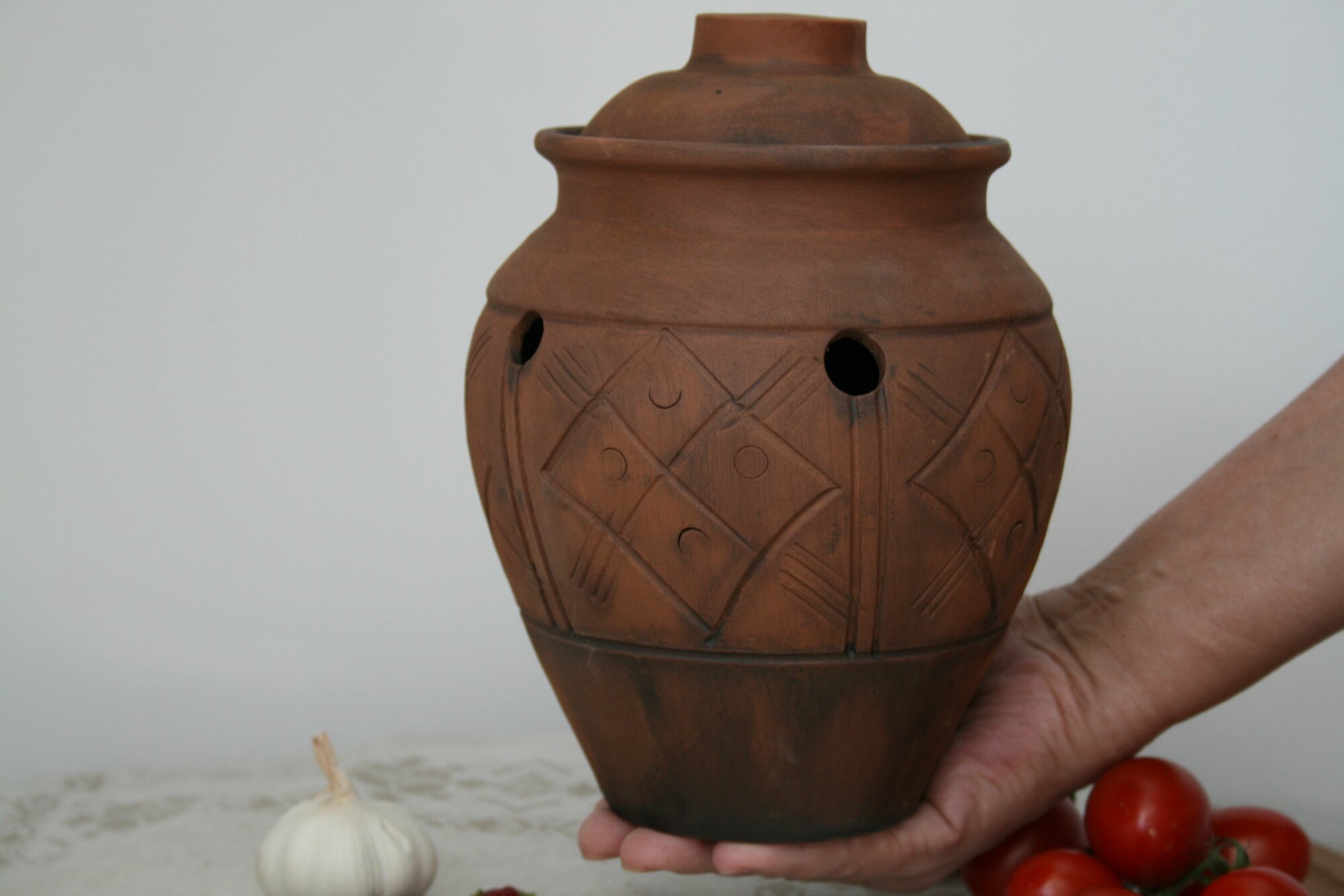 Горшок глиняный "Чиполлино" 2 л для хранения овощей / емкость для лука и чеснока информация:
