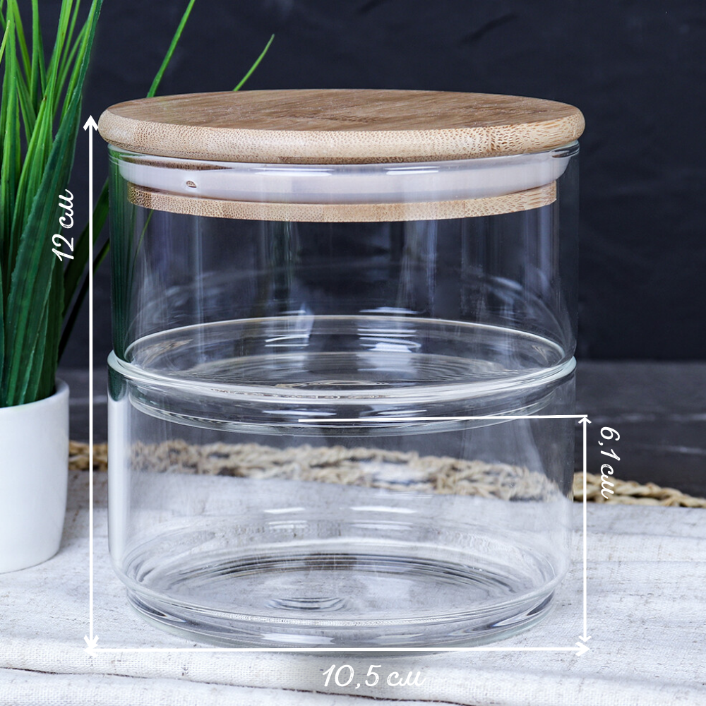 Отзывы на Банки для сыпучих продуктов 2-х ярусная по 450 мл, бамбуковая крышка, стекло