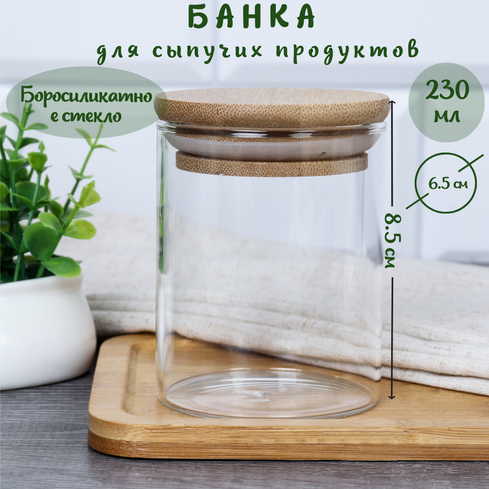 10 цен на Банка для сыпучих GALEONTRADE бамбук/стекло, 230мл, с крышкой
