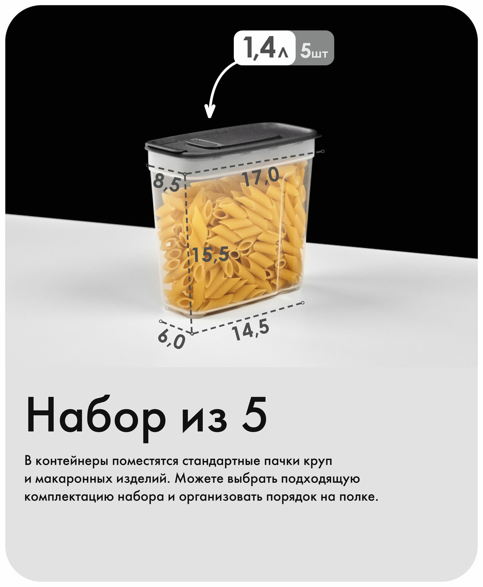 10 цен на Набор контейнеров для сыпучих продуктов ( 1,4л - 5шт) (графит)