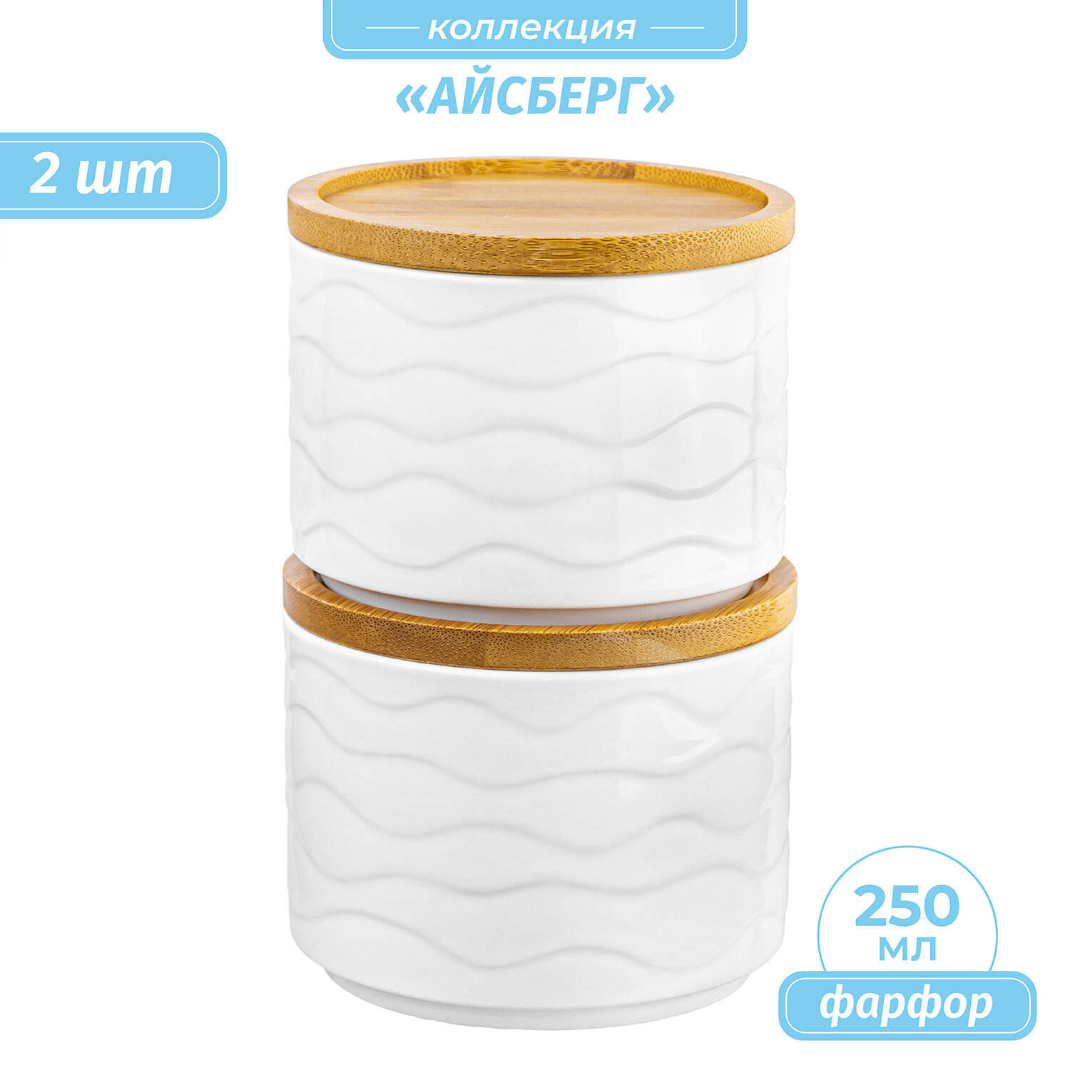Банка для хранения сыпучих продуктов, соли, специй, чая, кофе 2 шт 250 мл Elan Gallery Айсберг волны с крышками, набор информация: