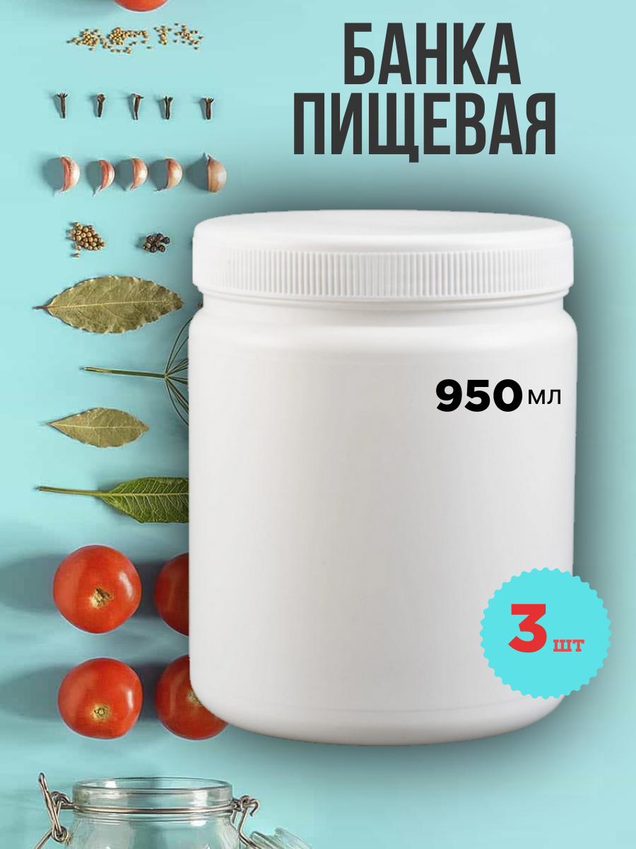 Набор банок для хранения пищевых продуктов 950 , пластик, белая информация: