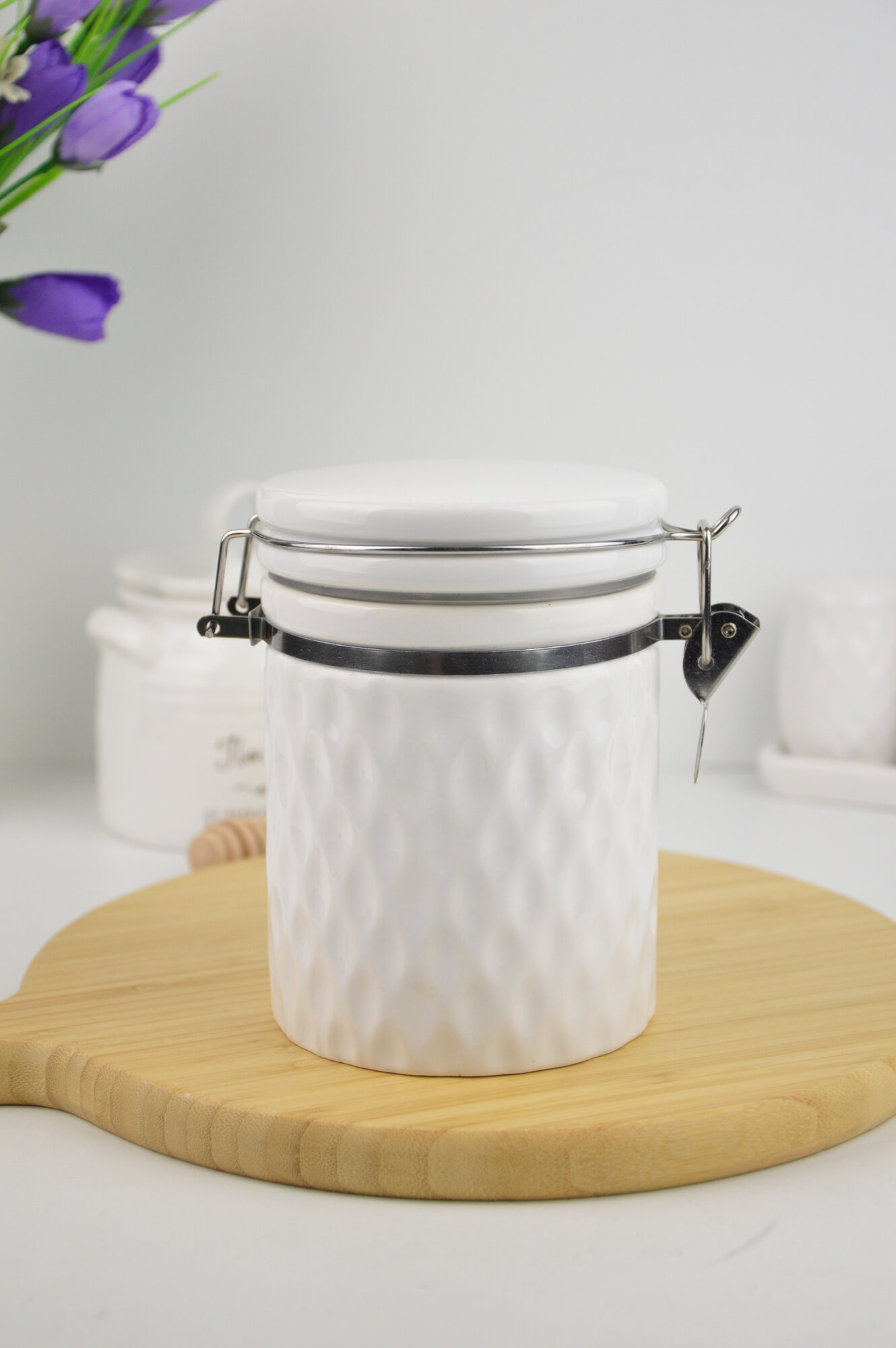 10 цен на Банка керамическая с крышкой для сыпучих продуктов белая 750 мл